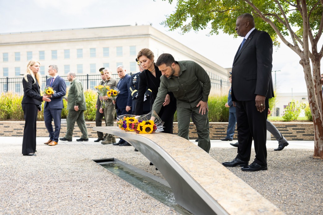 Під час робочого візиту до Сполучених Штатів Америки Президент України Володимир Зеленський і перша леді Олена Зеленська відвідали у Вашингтоні Національний меморіал на честь загиблих під час терористичного акту 11 вересня 2001 року.