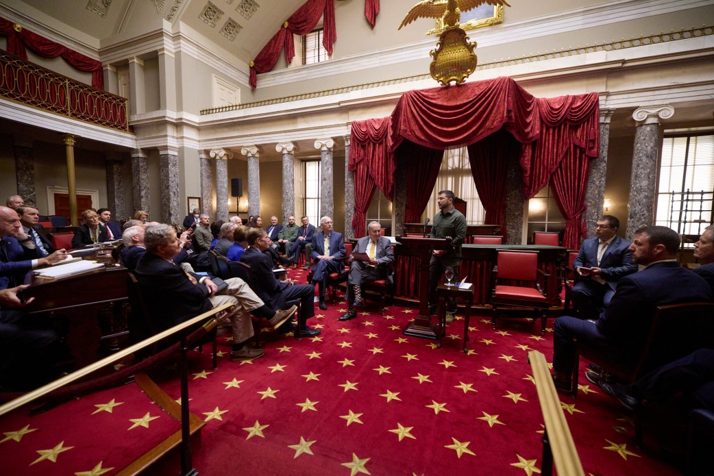 У межах робочого візиту до США Президент України Володимир Зеленський провів зустріч зі спікером Палати представників Конгресу США Кевіном Маккарті, лідером Республіканської партії в Палаті представників Стівом Скалізом і лідером Демократичної партії в Палаті представників США Хакімом Джефрісом.