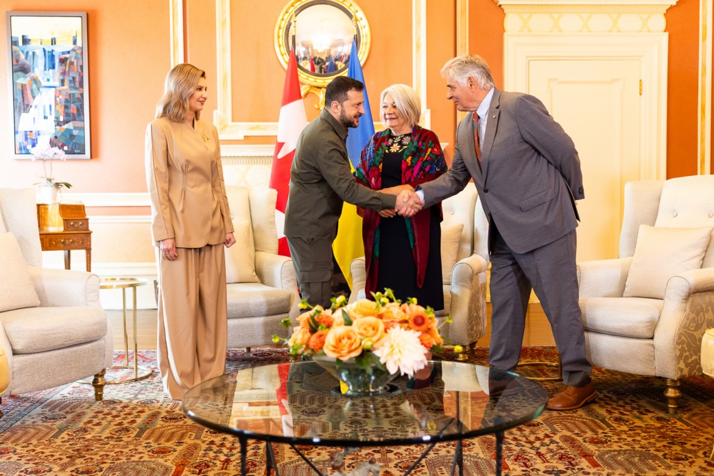 В Оттаві Президент України Володимир Зеленський і перша леді Олена Зеленська зустрілися з Генерал-губернаторкою Канади Мері Саймон та її чоловіком Вітом Фрейзером.