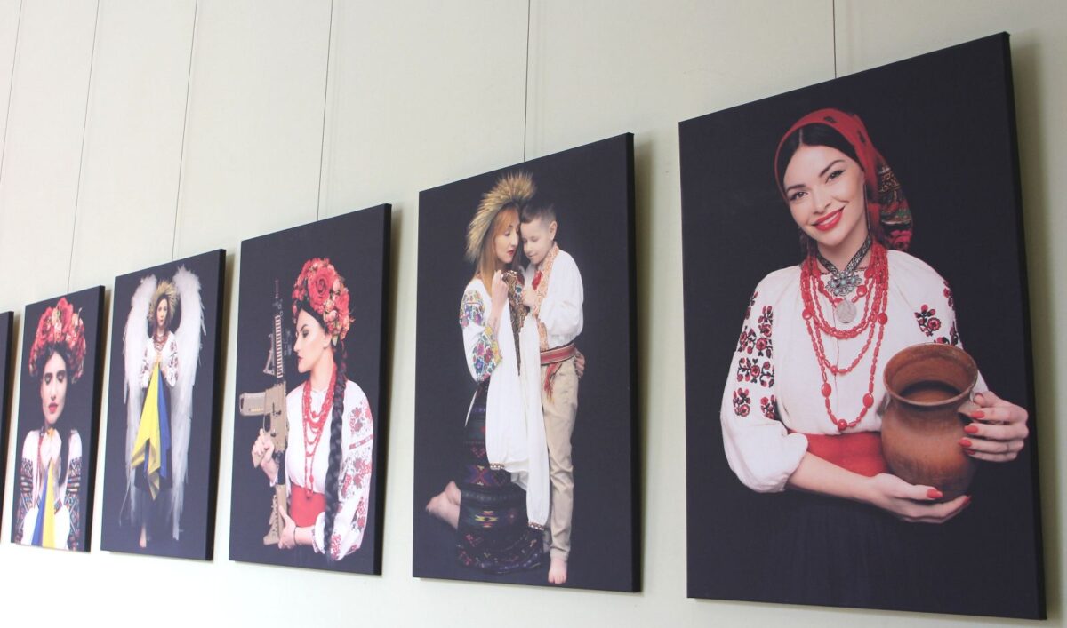 У виставковій залі міської ради Хмельницького розгорнули фотопортрети жінок, дітей, сімей, які допомагають українським захисникам, дружин та сестер, які втратили найближчих у війні з російським окупантом.