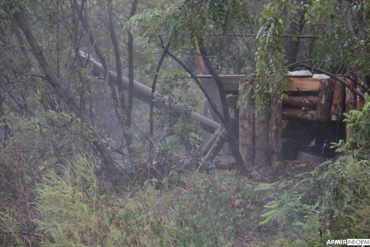 Далі ми завітали до розрахунку самохідної артилерійської установки 2С1 «Гвоздика». За фронтовими мірками вони створили собі непогані умови для проживання, тож перебувають поруч із бойовою машиною і постійно напоготові до відкриття вогню. До речі, під час одного з ворожих обстрілів уламки снаряду, що вибухнув у повітрі, пробили легку броню машини, але не зачепили жодного механізму, тож тепер «комфортне» укриття обладнали й для своєї самохідки.