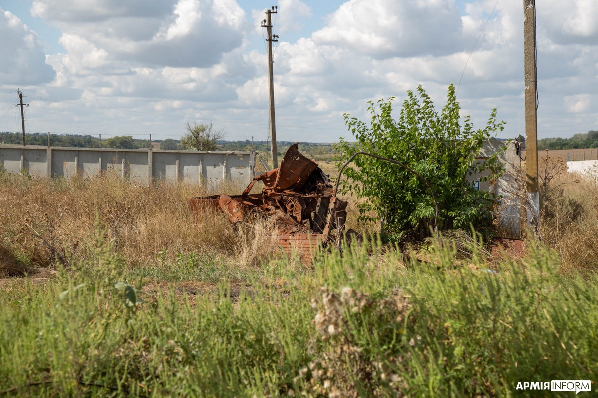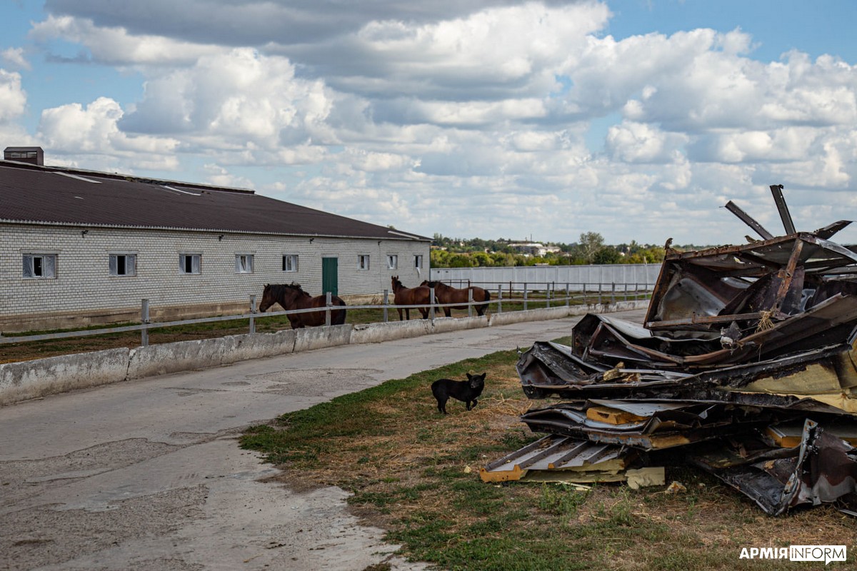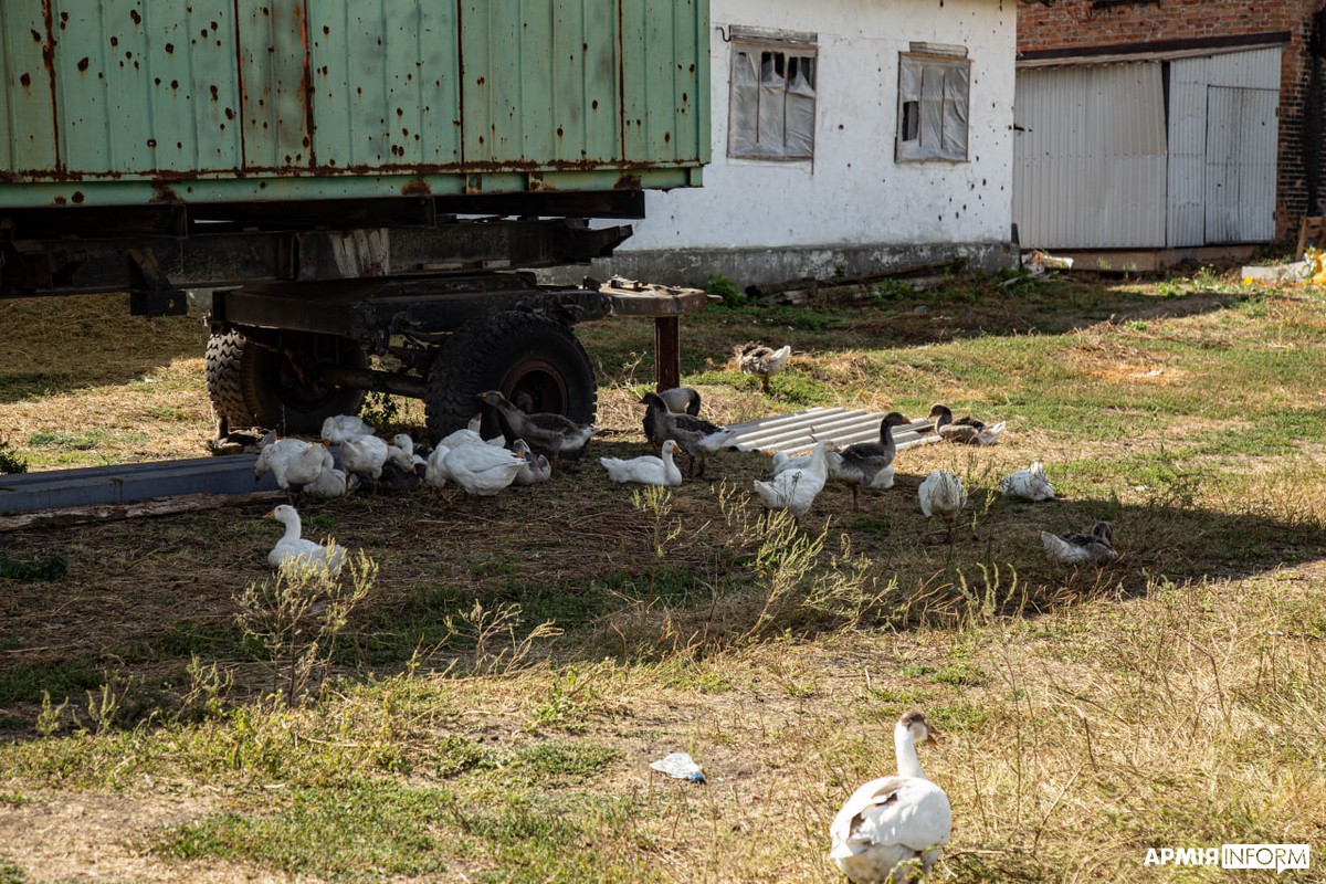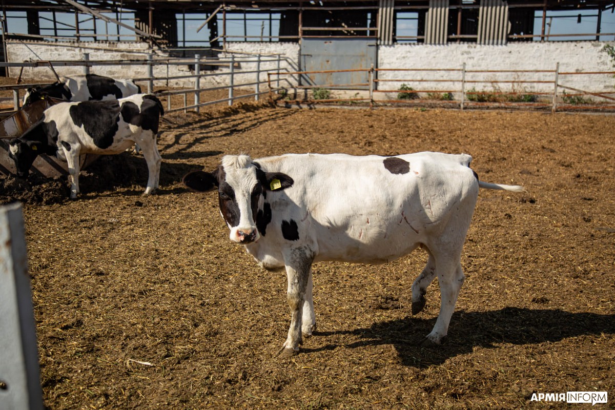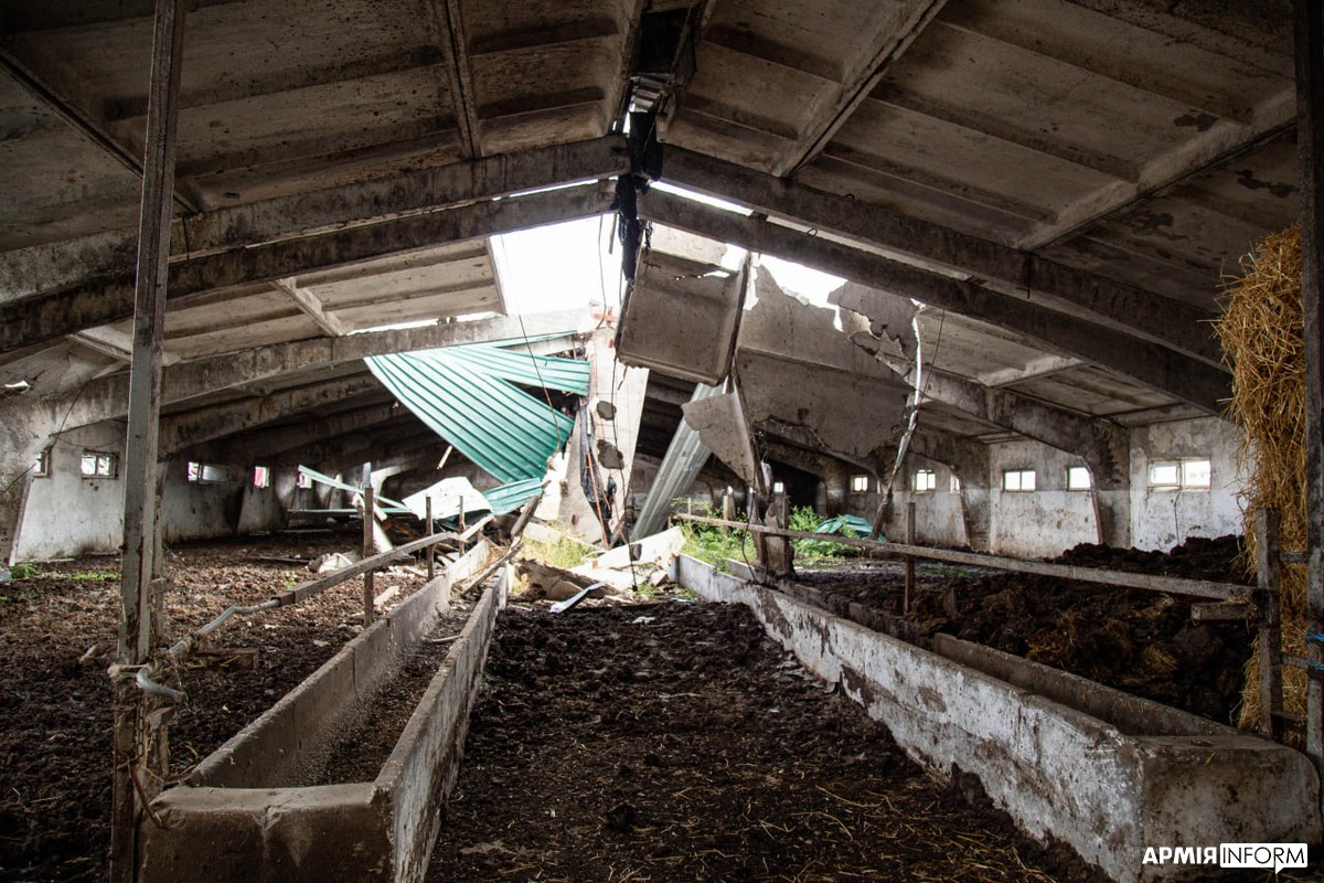 Господар підприємства запрошує нас прогулятися однією з ферм. Але попереджає: рухатися можна лише визначеними маршрутами — територія й досі повністю не розмінована. Картина нагадує апокаліпсис — місцями стоїть знищена російська техніка, в траві лежать залишки від «Градів» та «Смерчів». Кілька в минулому комфортабельних корівників з теплою підлогою та пластиковими вікнами розбиті вщент.
