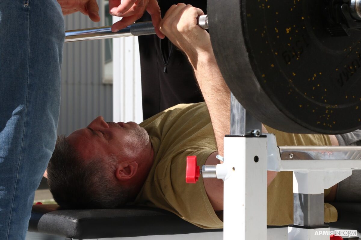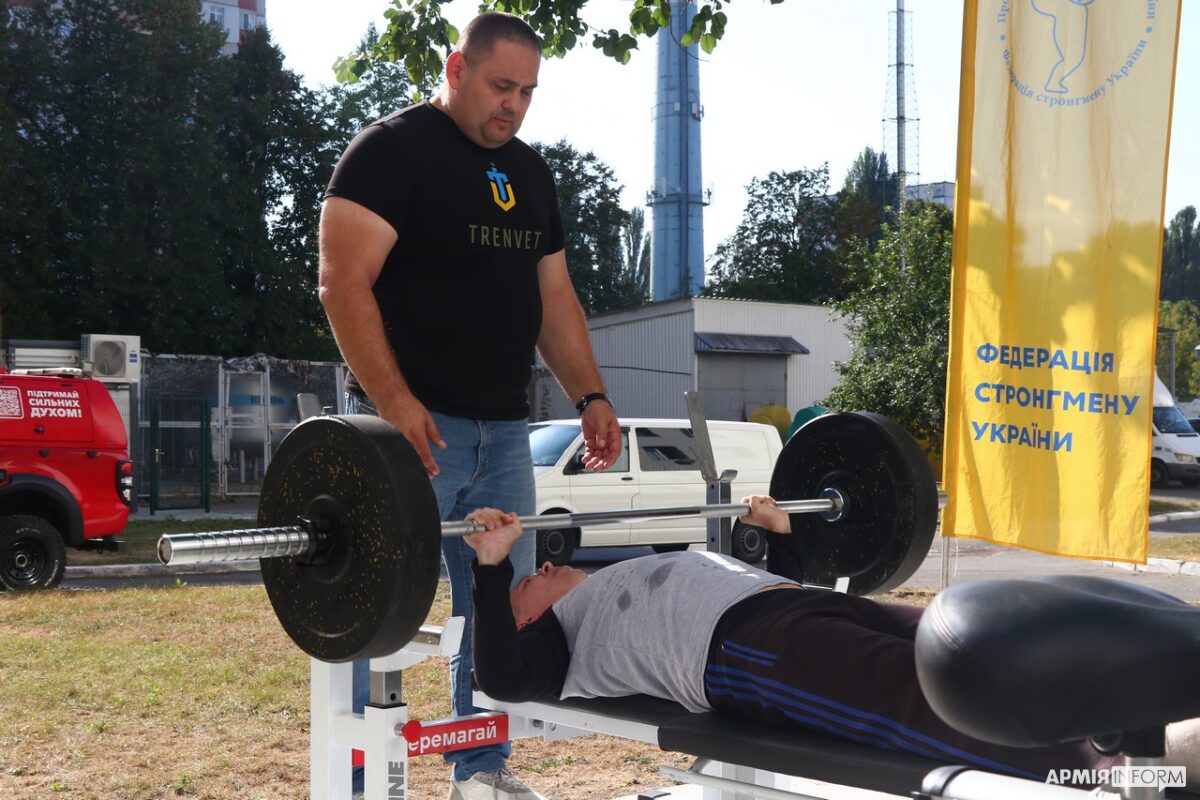 Також біля військовослужбовців постійно був присутній український стронгмен Олександр Лашин, який страхував їх під час жиму штанги лежачи.