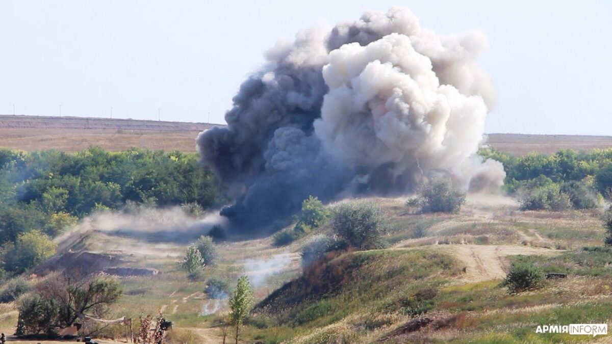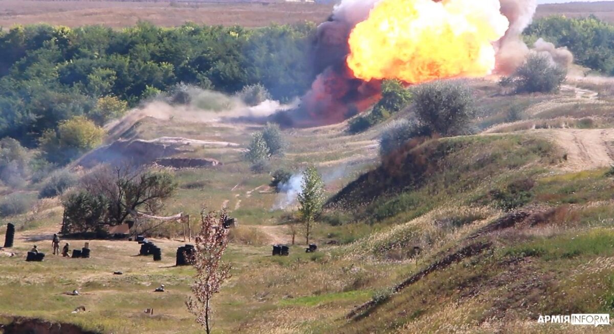 Під час навчань військові також вивчають і основи саперної справи. З-поміж іншого це переносна установка розмінування УР-83П із запуском заряду.