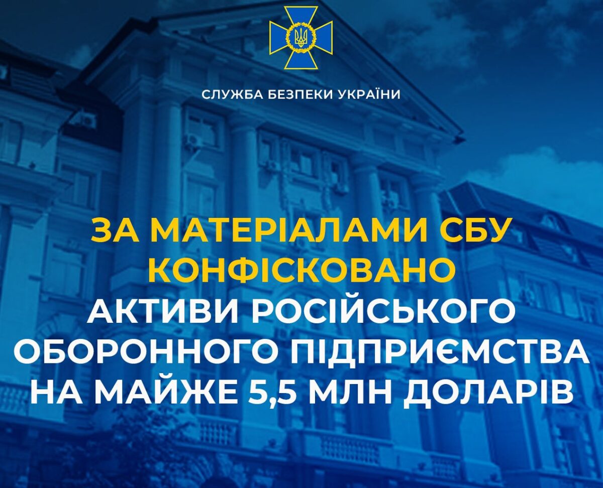 «За матеріалами СБУ конфісковано активи російського оборонного підприємства на майже 5,5 млн доларів