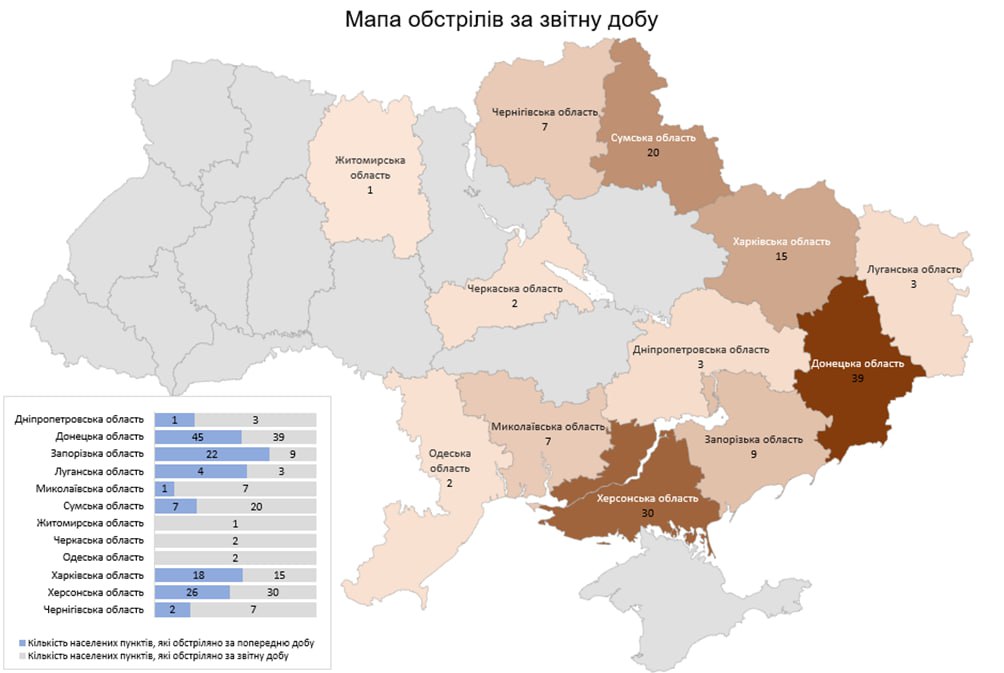 «Загалом з різних видів озброєння — гранатомети, міномети, танки, артилерія, РСЗВ, ОТРК, ЗРК, ударні БПЛА та тактична авіація — були атаковані 138 населених пунктів та 108 об’єктів інфраструктури», — йдеться у повідомленні.