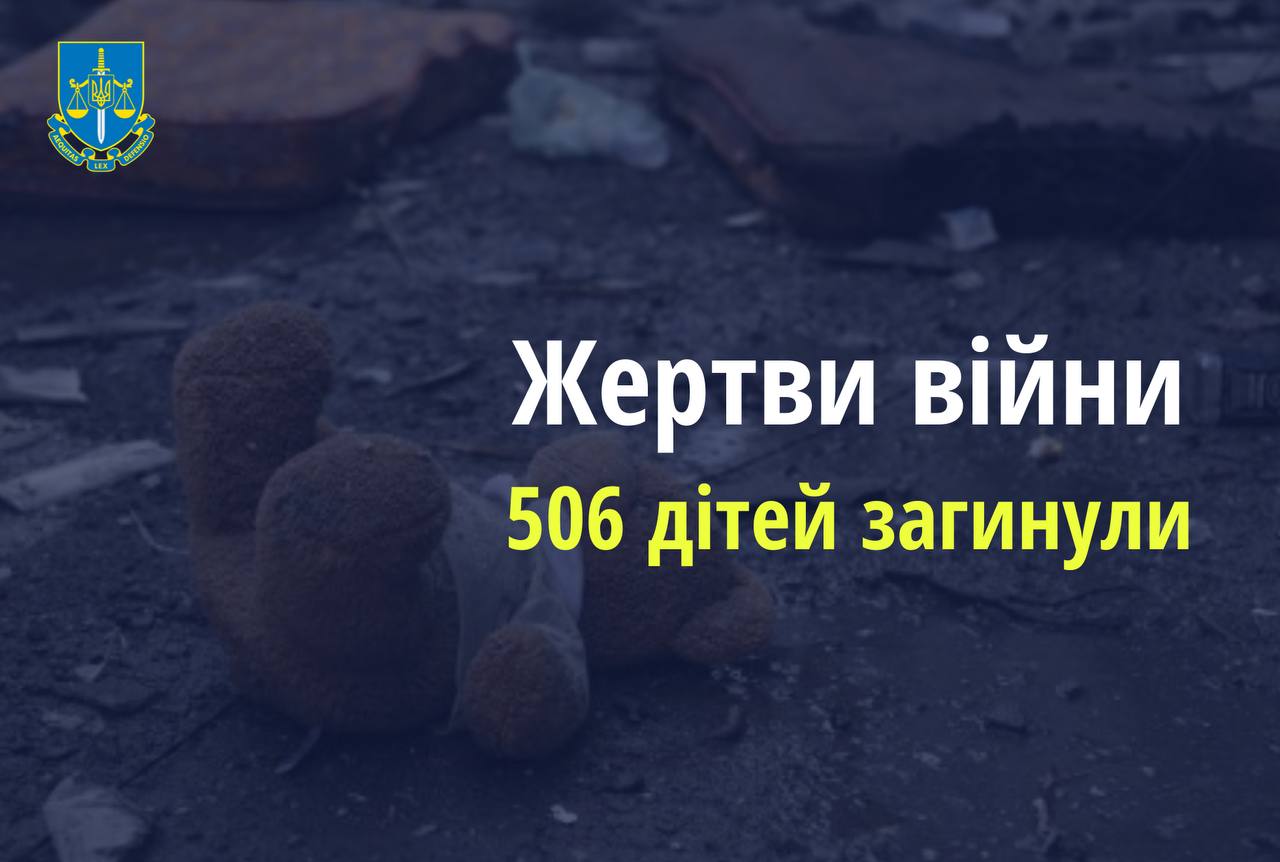 За офіційною інформацією ювенальних прокурорів, 506 дітей загинули та понад 1130 зазнали поранень різного ступеня тяжкості.