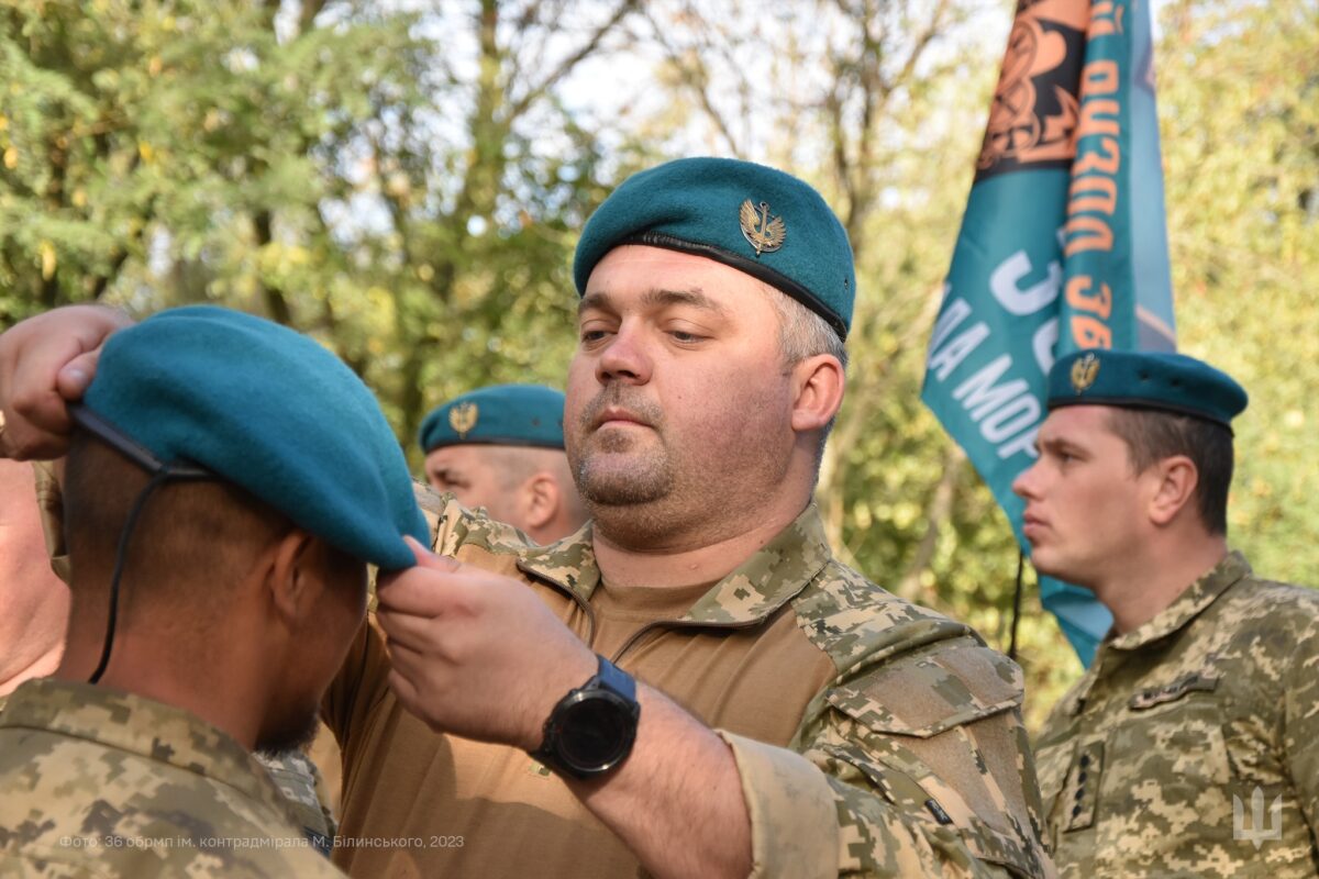 Командир бригади полковник Віктор Сікоза та командири підрозділів вручили морпіхам штормові берети.