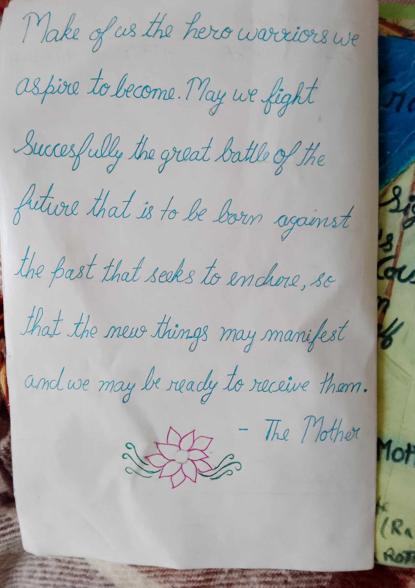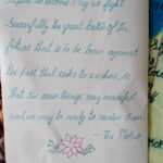 — Ці молоді люди вивчили, що на «Слава Україні!» треба відповідати «Героям Слава!», вони вболівають за українську перемогу. Серед малюнків — портрет Президента України Володимира Зеленського від хлопчика Рама, і листівка, з якою важко було розлучатися, бо її підписали «дорогій Любі та нашим українським друзям», додавши «Слава Україні — Героям Слава!» і «Перемоги Україні!». На ній зображені білі журавлі, які несуть у своїх дзьобах квіти, пролітаючи над горами під блакитним мирним небом. У листівці побажання англійською мовою «Зробіть із нас воїнів-героїв, якими ми прагнемо стати. Успішно проведіть велику битву задля майбутнього, яке має народитися, проти минулого, яке прагне встояти. Щоб нове могло проявитися, а ми були готовими його прийняти».