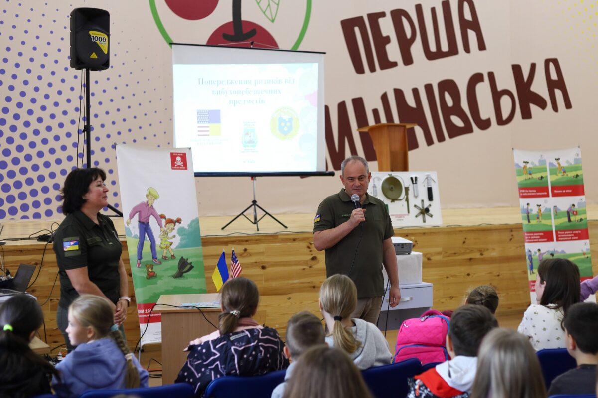 У вітальному слові з нагоди старту проєктної діяльності в Київській області директор Департаменту освіти і науки відзначила надзвичайну важливість навчання дітей правильним діям у разі мінної небезпеки. Також пані Ярослава висловила подяку уряду США за особливу увагу до вирішення гуманітарних проблем територіальних громад Київщини, які постраждали внаслідок російської збройної агресії.