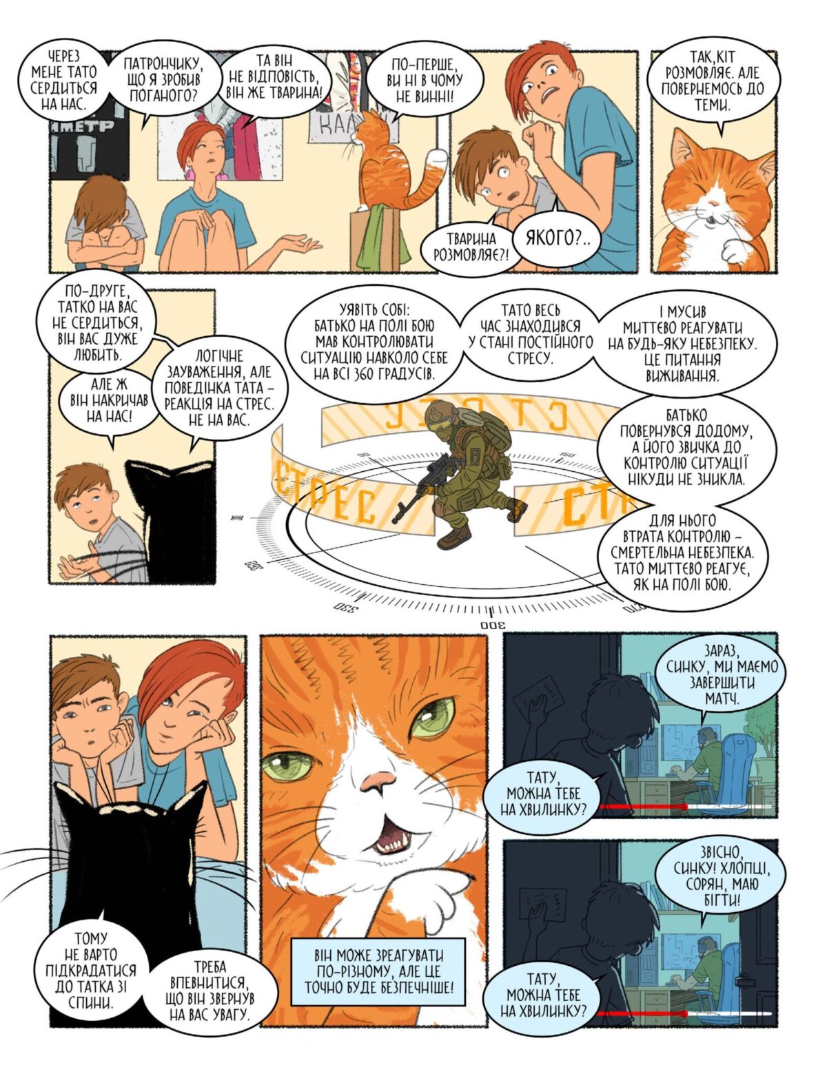 Про що цей проєкт? Це книга-комікс, яка пояснює особливості спілкування з батьком, що повернувся з війни, допомагає зрозуміти його психологічний стан та сприяє інтеграції ветерана в суспільство.