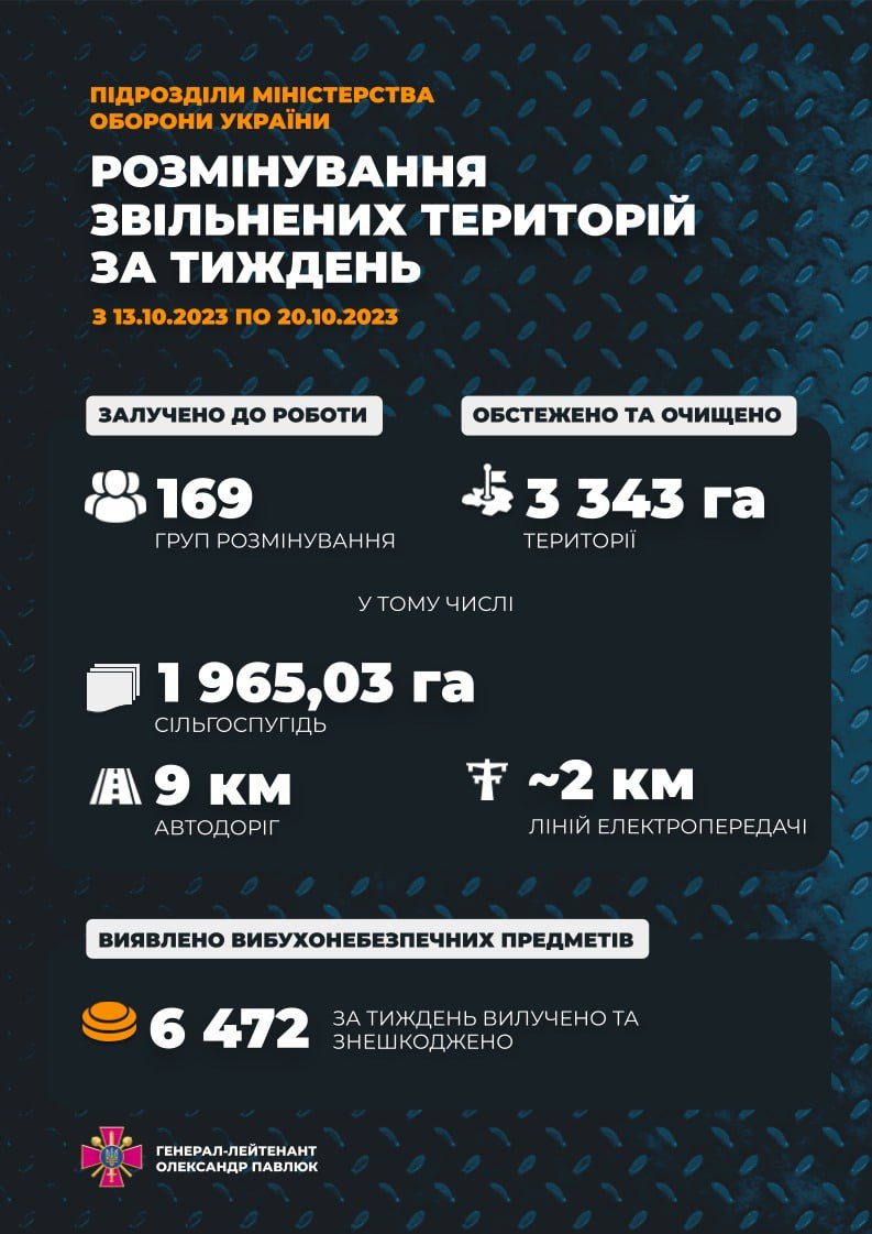 «За тиждень роботи вилучено та знешкоджено 6472 вибухонебезпечних предметів», — додав він.