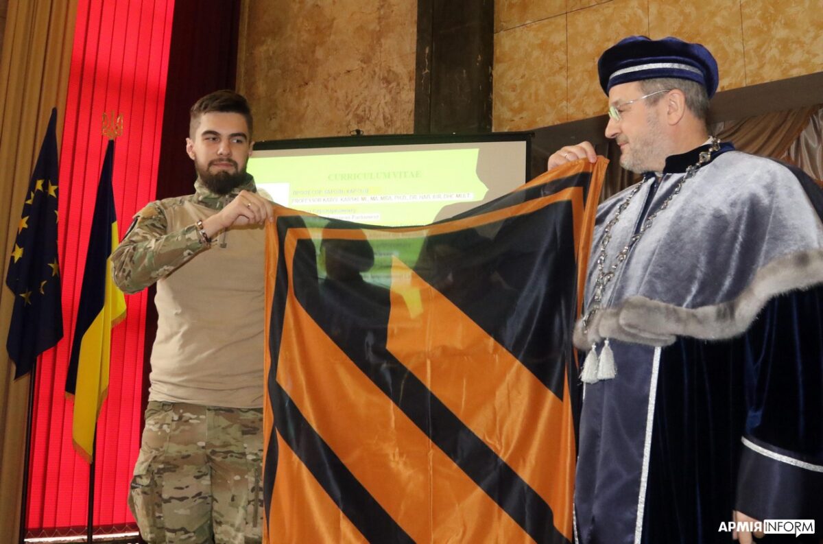 На знак подяки за підтримку Юрій подарував рідному університету прапор 3-ї окремої штурмової бригади.