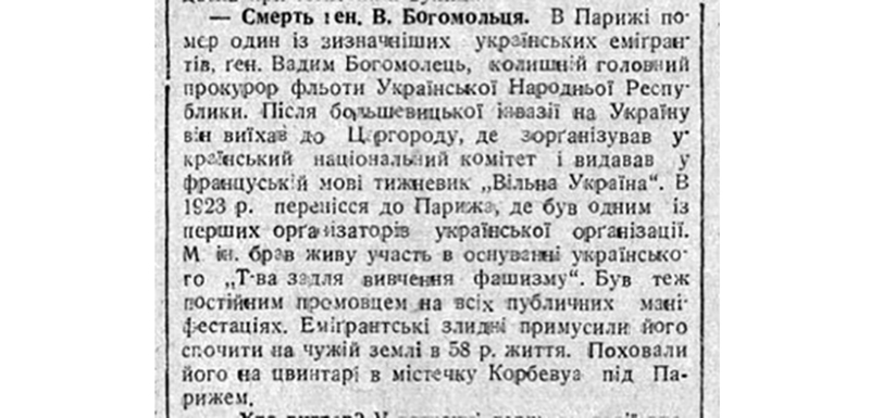 22 жовтня виповнилось 145 років від дня народження Вадима Богомольця (1878–1936) — відомого українського військового діяча, військово-морського юриста та генерал-хорунжого Української Держави. За доби Української революції 1917–1921 років він зробив значний внесок у створення українського військово-морського флоту і став головним розробником найпершого українського закону про флот.