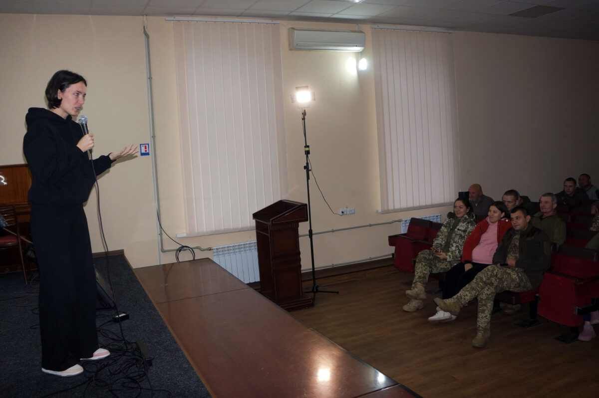 — Ви всі, хто тут зараз у залі, неймовірно круті. Мені дуже приємно виступати перед героями та героїнями. Як представниця «Культурного десанту» я вже не раз зустрічалася з армійцями. Проте на Харківщині вперше виходжу до такої вельмишановної аудиторії, — зауважила відома артистка.