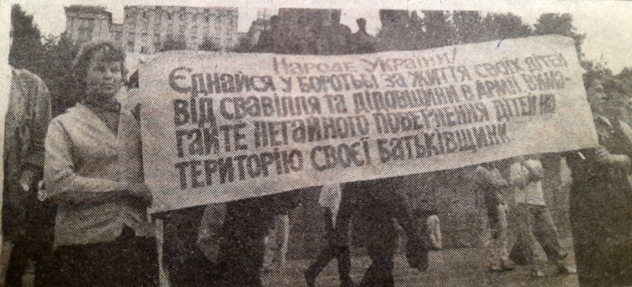«Юнакам з України служити лише на Україні!», «Армія та міліція тільки тоді заслуговують на повагу, коли вони захищають інтереси народу», «Народе України! Єднайся у боротьбі за життя своїх дітей від свавілля та дідівщини в армії. Вимагайте негайного повернення дітей на територію своєї Батьківщини», — такими гаслами на плакатах висловлювали українці своє схвалення розділу ІХ Декларації про державний суверенітет України під час велелюдних демонстрацій у центрі Києва влітку й восени 1990 року. Зафіксовані на світлинах фотокореспондентів «Літературної України» вони назавжди збереглися для історії.