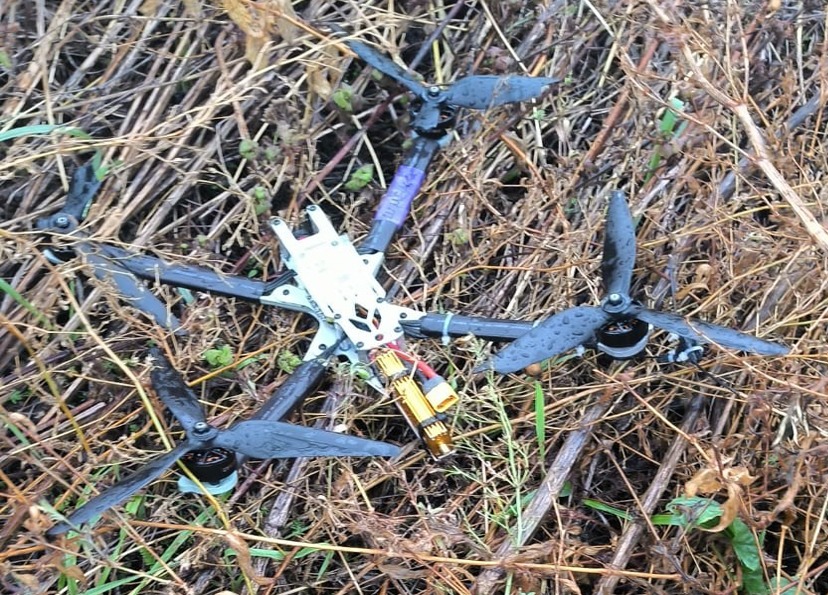 Другий дрон зі снарядом на борту, відчувши на собі дію антидронової рушниці, втратив керування та розлетівся в різні боки, а сам БПЛА приземлився практично неушкодженим.
