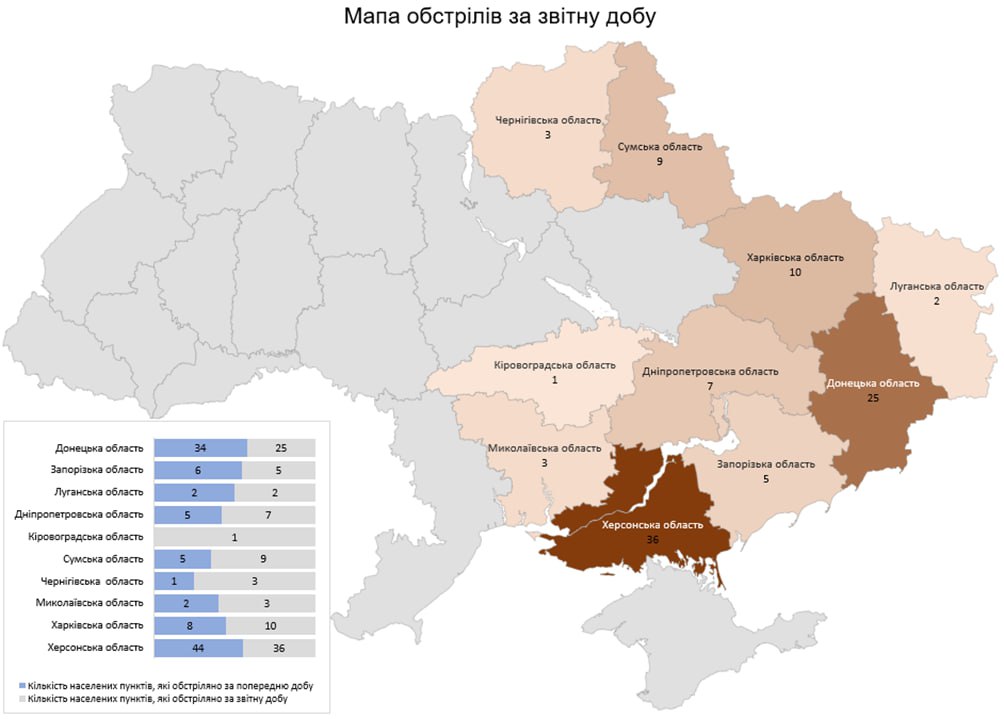 «Загалом з різних видів озброєння — міномети, танки, ствольна артилерія, РСЗВ, ЗРК, ОТРК, БПЛА та тактична авіація — були атаковані 101 населений пункт та 79 об’єктів інфраструктури. Є загиблі та поранені серед цивільних, кількість жертв уточнюється», — йдеться у повідомленні.