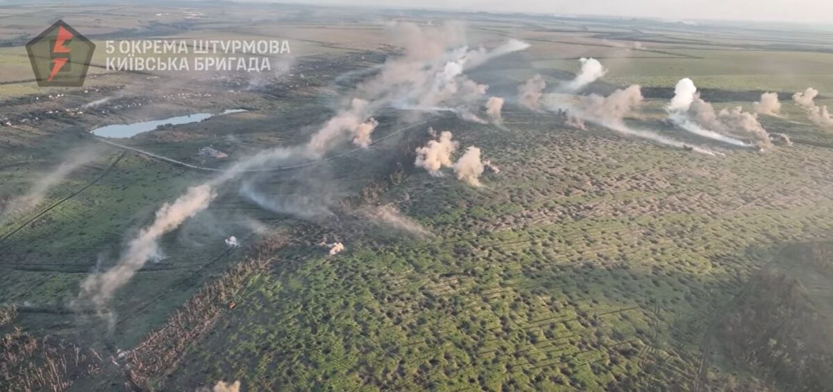 Воїни окремої штурмової бригади оприлюднили вражаючі кадри знищення колони танків зс рф.