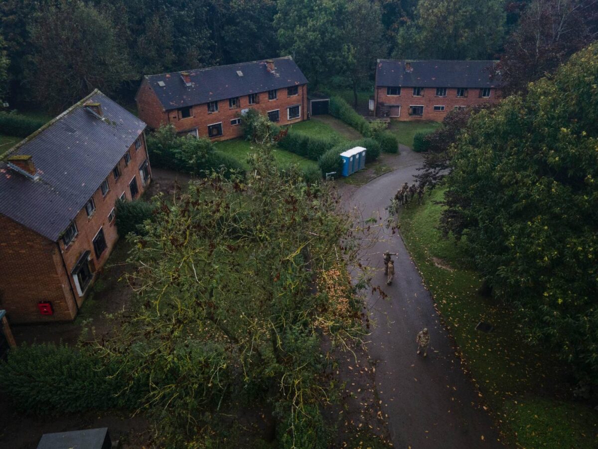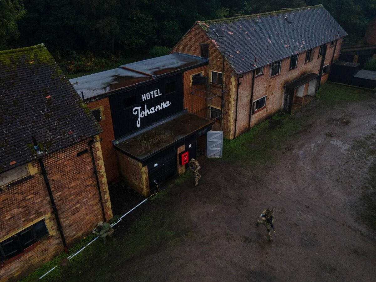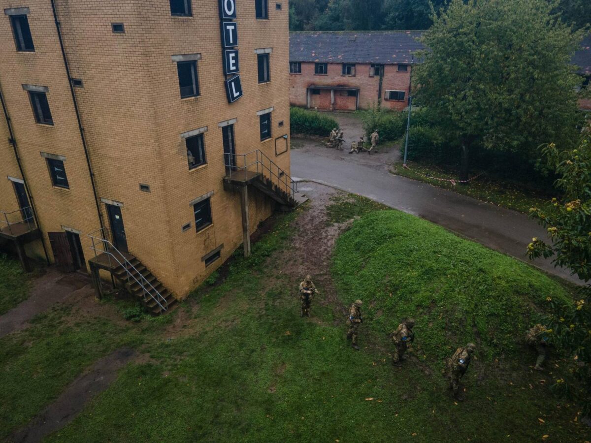 «Один із полігонів Великої Британії, де тренують українських новобранців, створили зі справжнього села на Півночі Англії. На цій тренувальній ділянці навчають боям в урбанізованій місцевості інструктори з Норвегії в рамках багатонаціональної операції „ІНТЕРФЛЕКС“. На території є справжні житлові будинки, готелі, ділянка залізниці, каналізація,— з такими об’єктами військові можуть стикатися під час бойових дій на українській передовій. Деякі райони допрацювали, поставивши штучні будинки. Окрім того, по селу де-не-де розміщена стара іржава військова техніка, яку під час тренувань іноді підпалюють, щоби ситуація на тренувальній ділянці нагадувала умови українських прифронтових сіл», — йдеться у дописі.