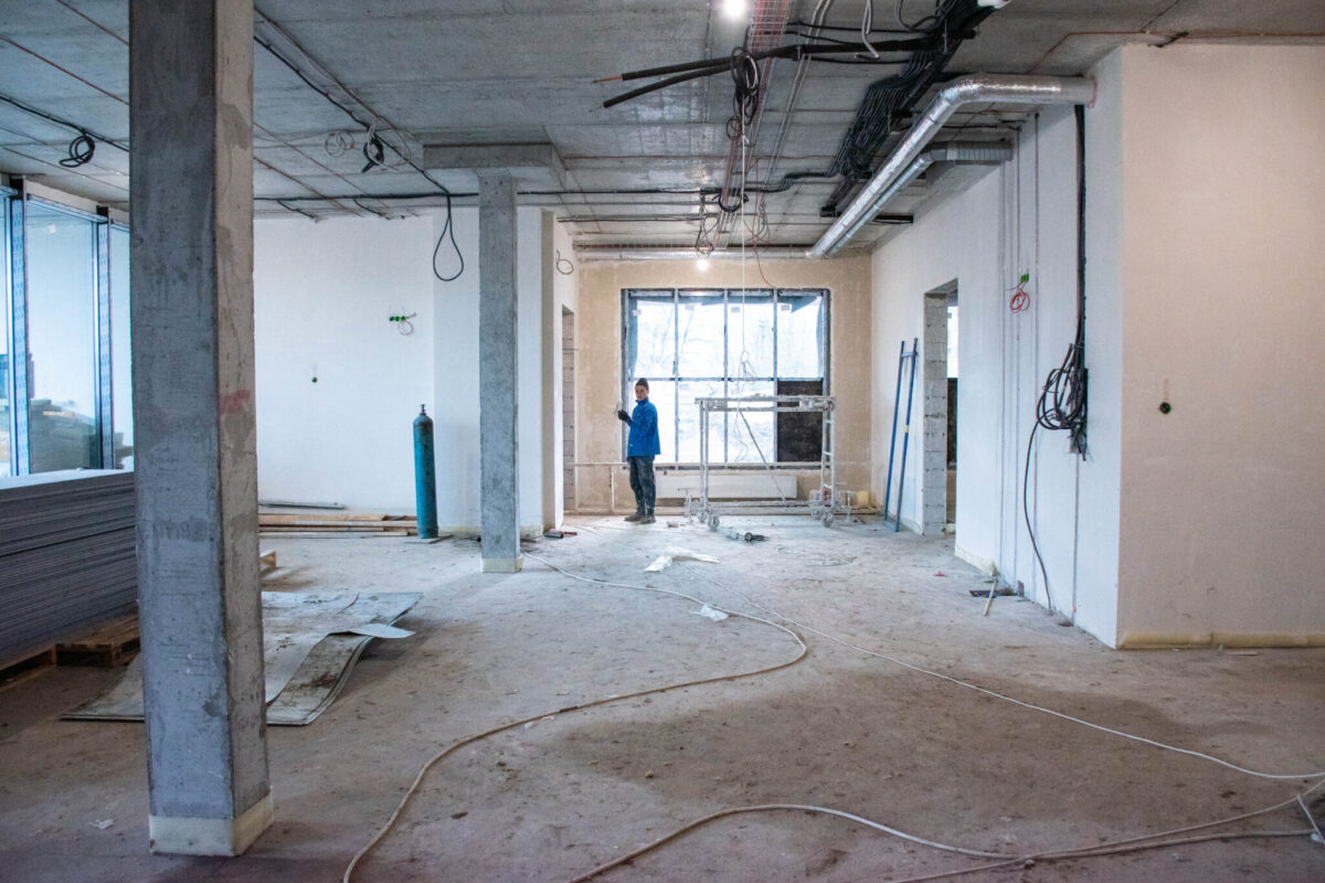 Наразі на завершальній стадії фасадні роботи та елементи внутрішнього оздоблення, прокладаються належні комунікації тощо.