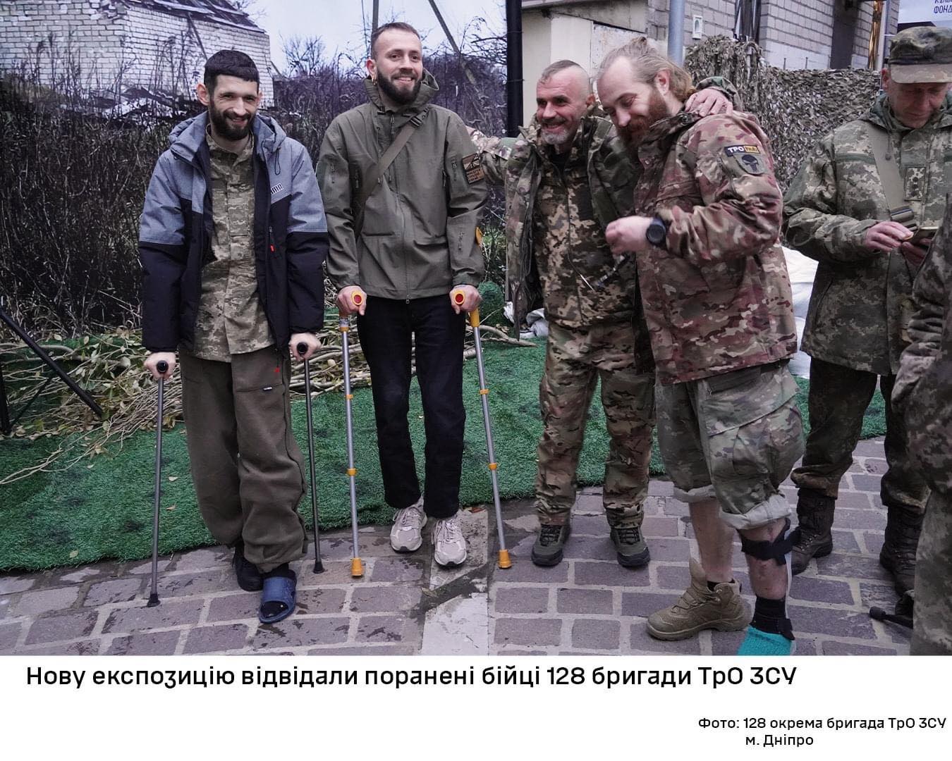 Серед перших відвідувачів — ветерани бригади, які з перших днів її існування прийшли добровольцями. Ці ветерани різного віку: комусь 65 років, комусь — 25. Хтось вже повернувся до цивільного життя за віком, хтось лікується після поранень. Але всі вони кажуть, що нова експозиція показує, наскільки крихкий мир навколо нас і як важливо не дати війні прийти на нові території.