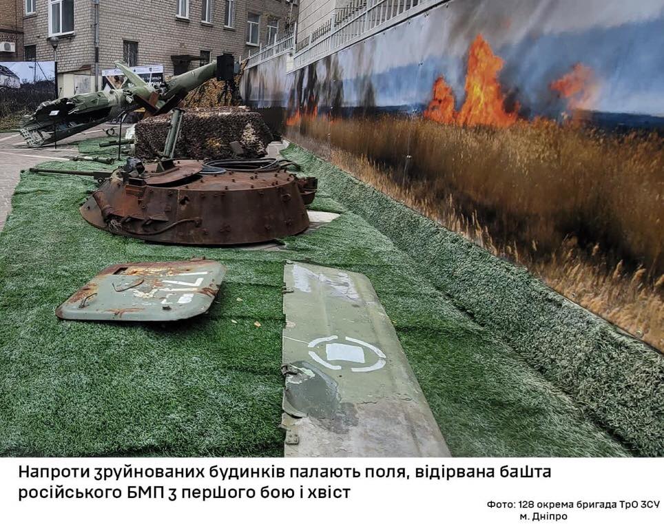 Експозиція працює біля міської ради міста Дніпро, поряд з інсталяцією «Хрест ЗСУ», створеної з протитанкових їжаків».