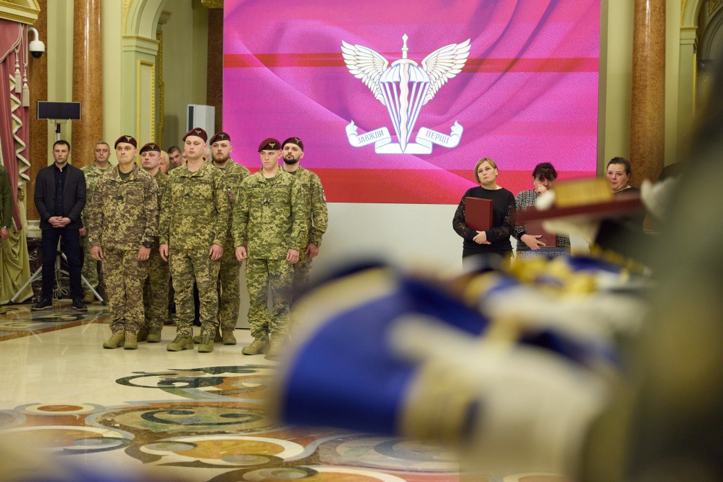 З нагоди Дня Десантно-штурмових військ Збройних Сил України Президент Володимир Зеленський вручив високі державні нагороди, бойові прапори, стрічки почесної відзнаки Президента України «За мужність та відвагу» й присвоїв почесні найменування бригадам.