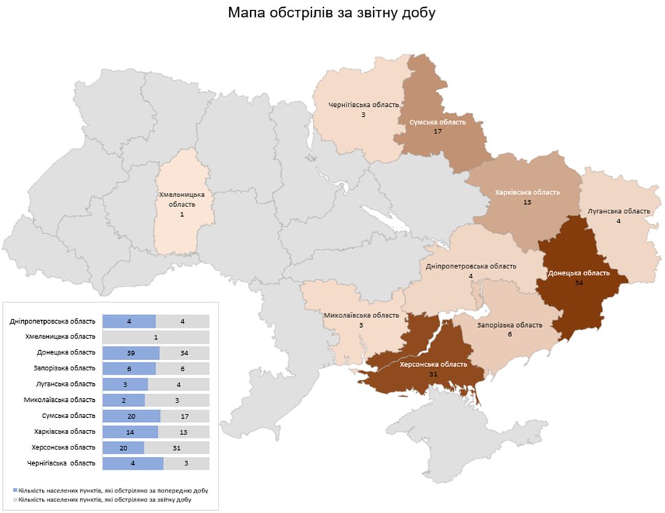 «Загалом з різних видів озброєння — гранатомети, міномети, танки, артилерія, РСЗВ, БПЛА та тактична авіація — були атаковані 116 населених пунктів та 115 об’єктів інфраструктури», — йдеться у повідомленні.