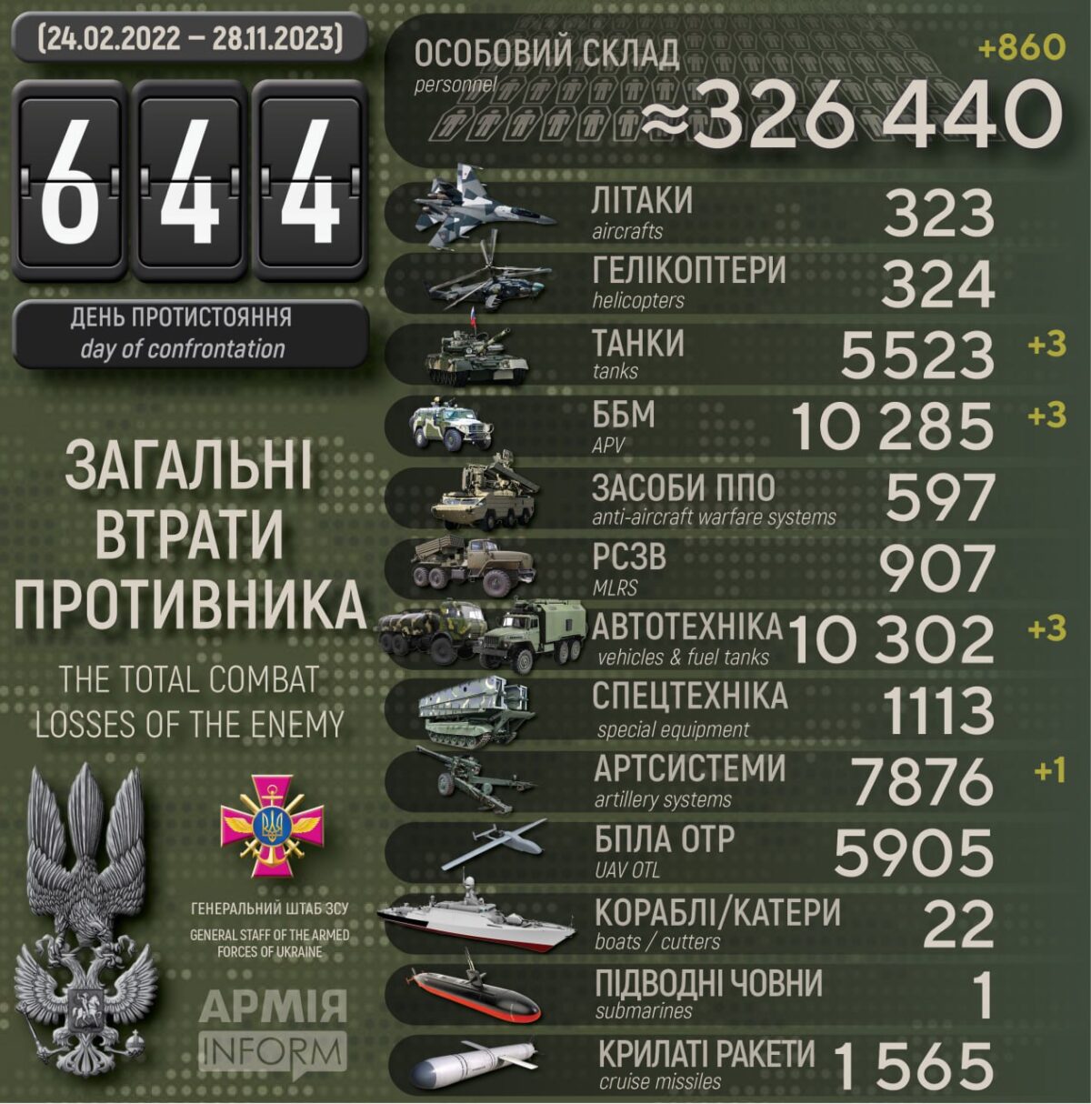 Джерело: Генеральний штаб Збройних Сил України станом на 28.11.23.