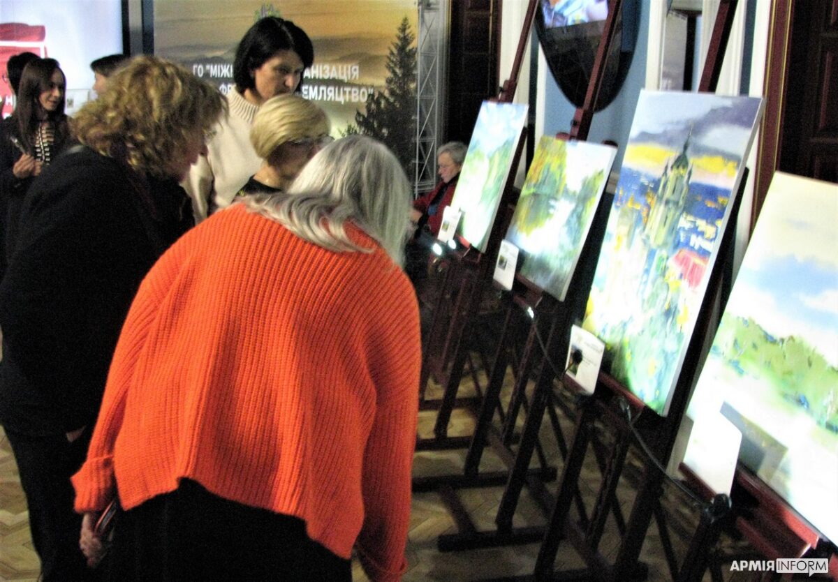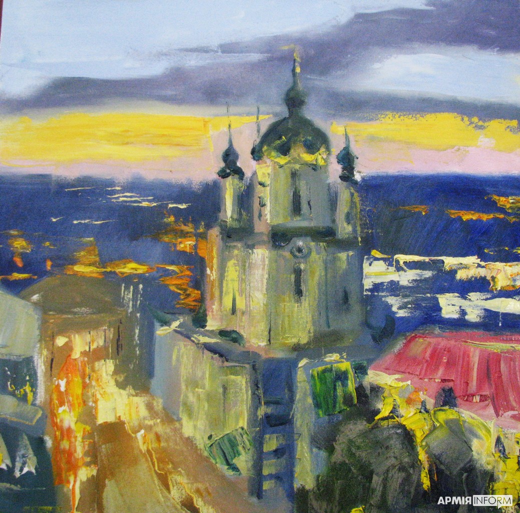 Першою на аукціон було виставлено картину «Незламний Київ», в написанні якої взяв участь боєць легендарної окремої гірсько-штурмової бригади «Едельвейс» Дмитро Попов. А ціна на неї стартувала з п`яти тисяч гривень і зупинилась на п’ятдесяти. Придбав її бізнесмен Микола Вірьовкін.