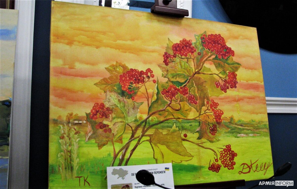 Цікава боротьба між учасниками аукціону точилася за «Тиху річку», яку писали разом художниця Оксана Поліщук і учасник боїв на Бахмутському напрямку уродженець Сумщини сержант Володимир Скляр. А також за «Український пейзаж», уже згадуваного тандему Валентина Гарбовського і Анатолія Погорілого. Небайдужі були прихильники живопису й до «Червоної калини» художниці Тетяни Красної і морського піхотинця, оборонця Маріуполя Олександра Дідура (АрміяInform писала про створення полотна). Боротьба за картину зупинилась на 40 тисячах гривень.