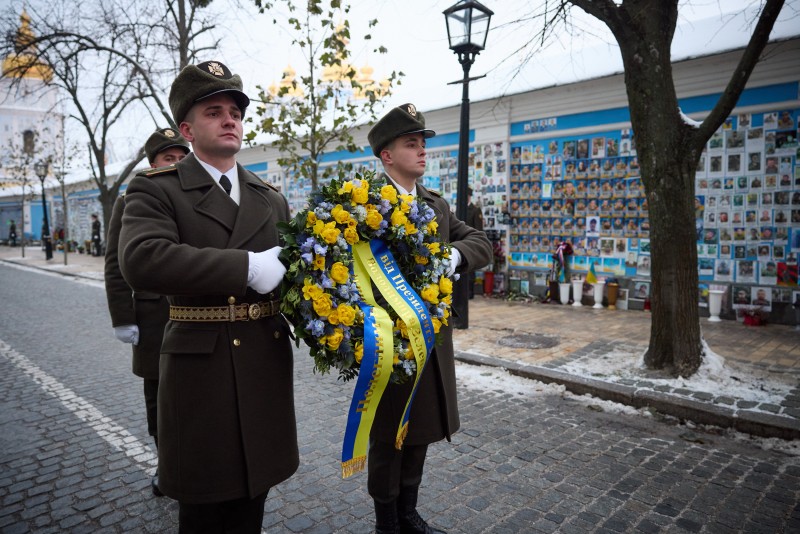 Воїни почесної варти встановили до Стіни пам’яті вінок квітів від українського народу.