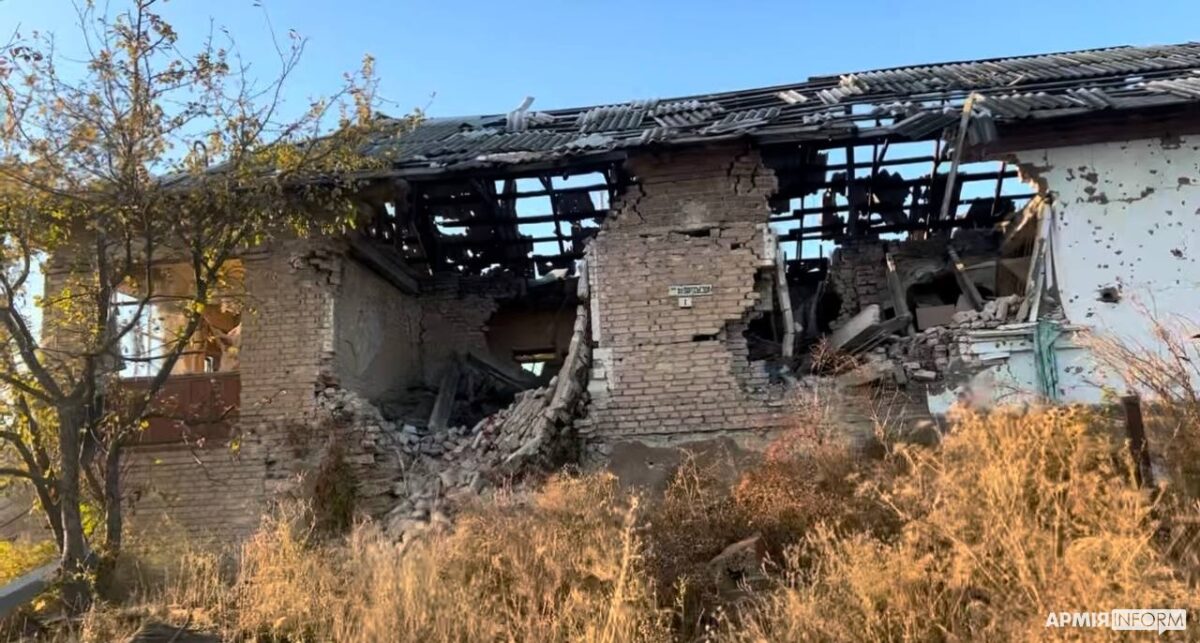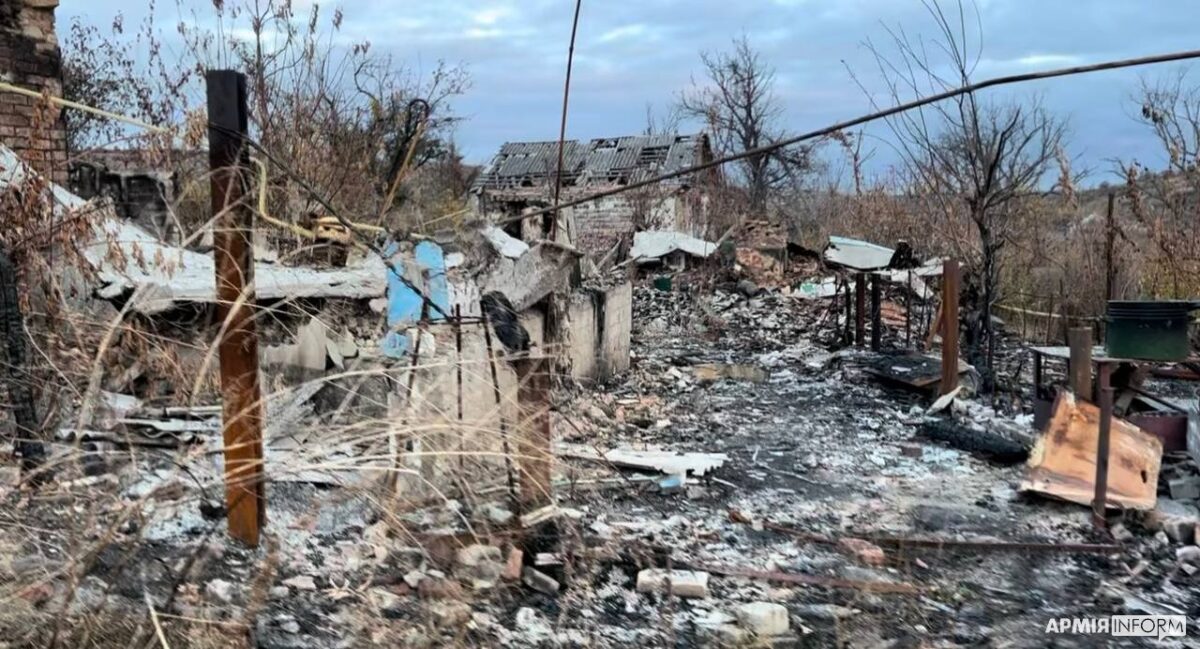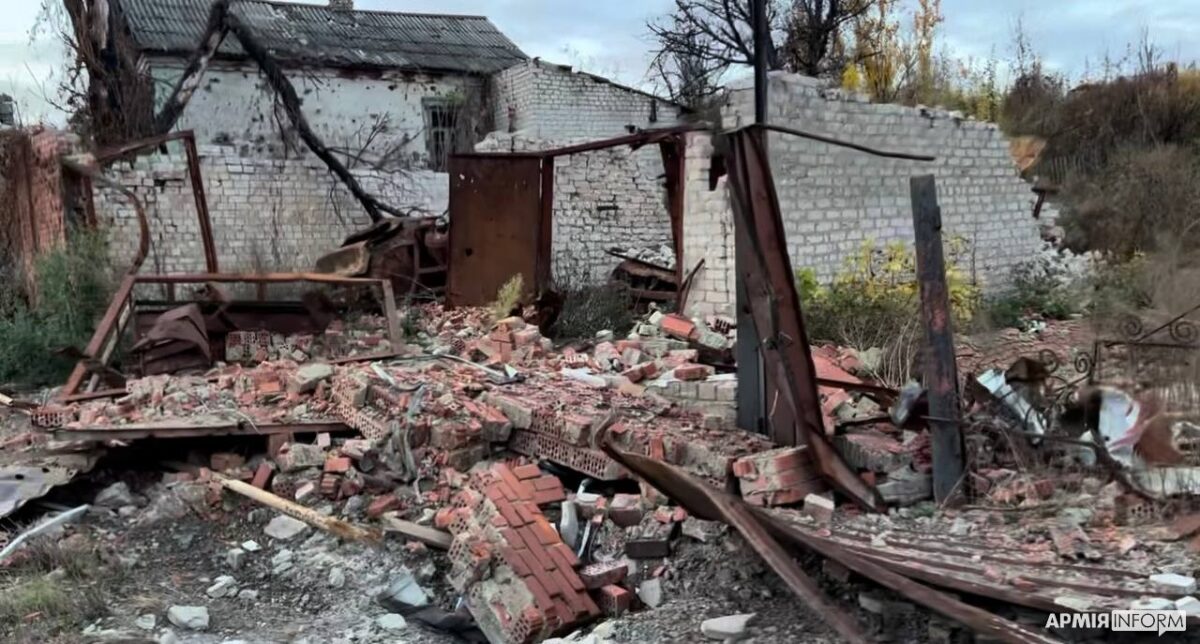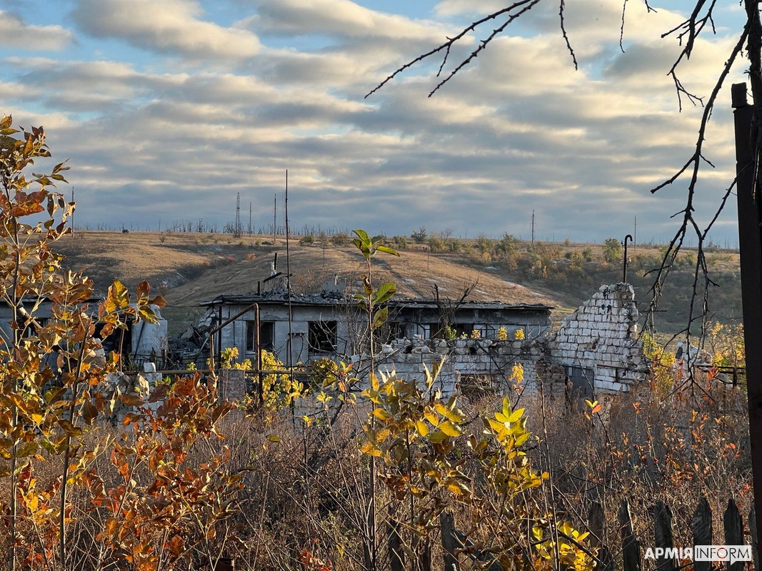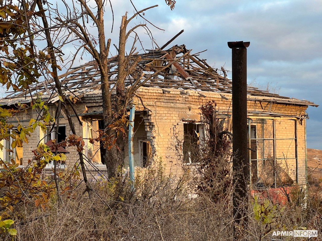 Швидкими перебіжками — й через певний час ми забігаємо в саме село. Просто не хочеться вірити в те, що постає перед очима: вщент «розібрані» ворожими прильотами хатини, спустошені дороги, якими колись їздили люди, зараз вкриті лише уламками.