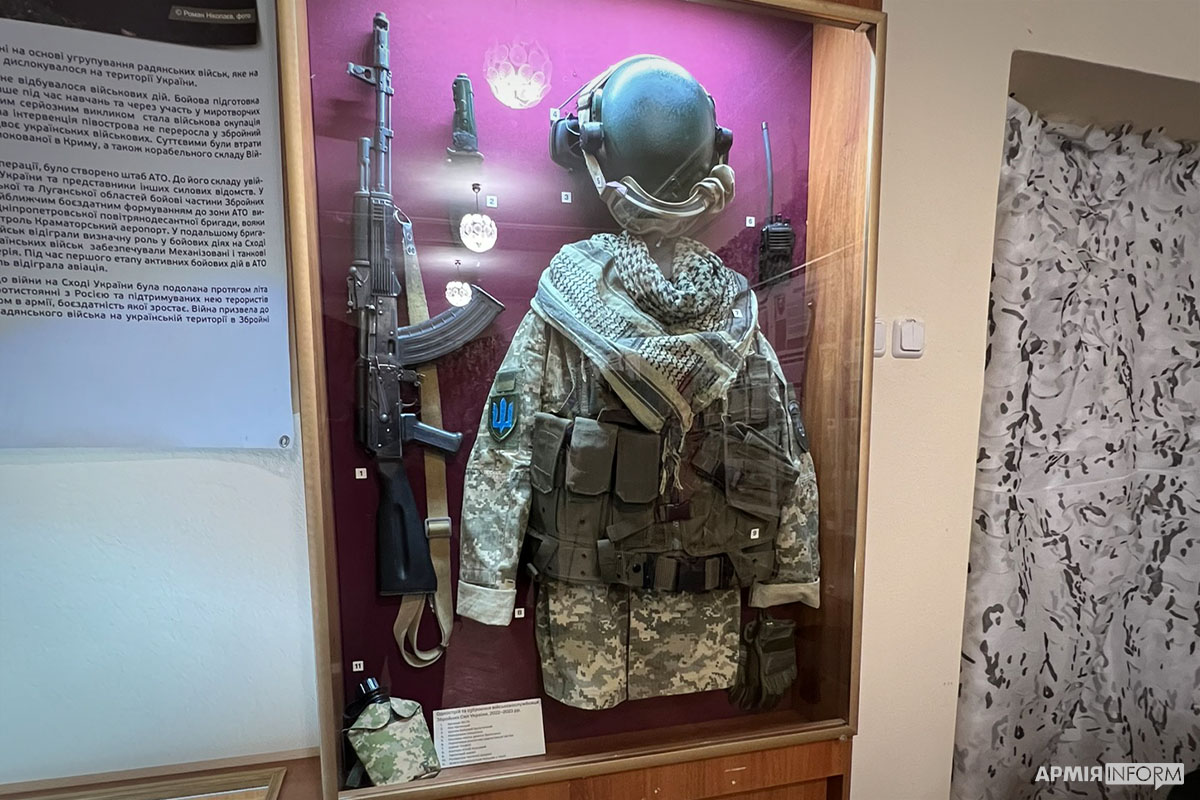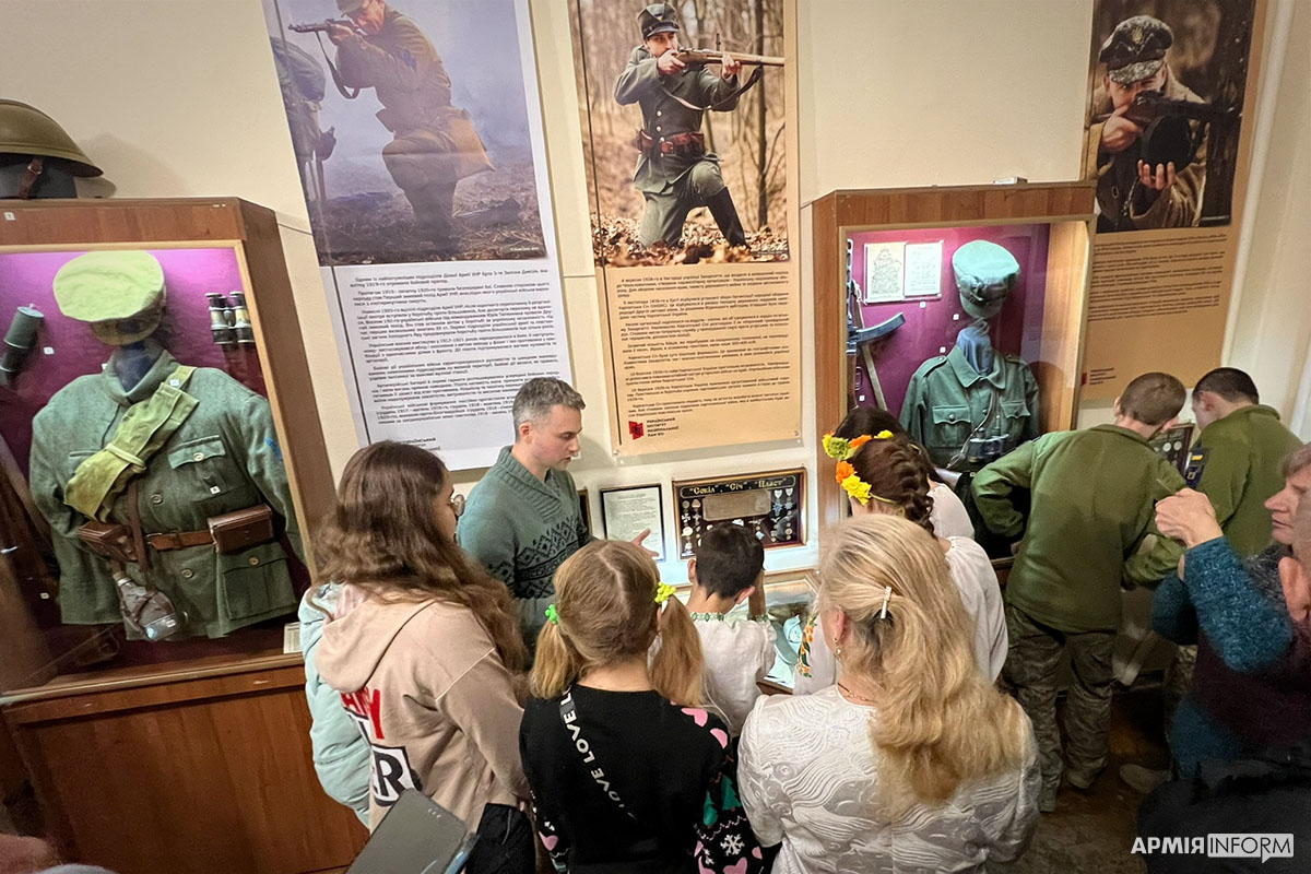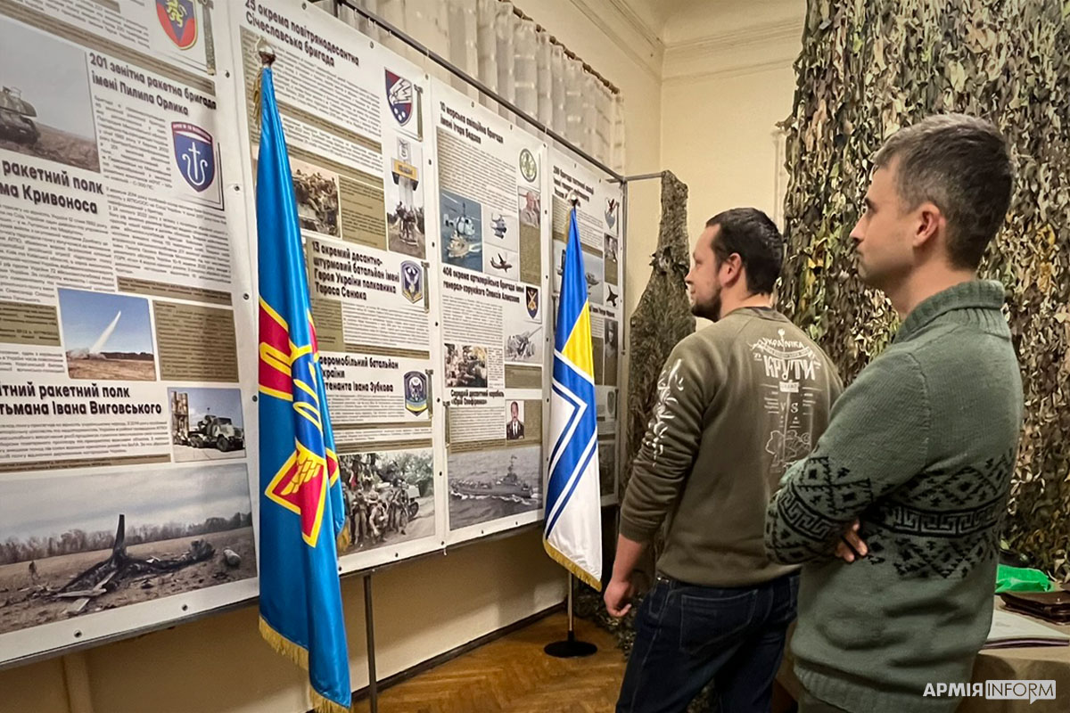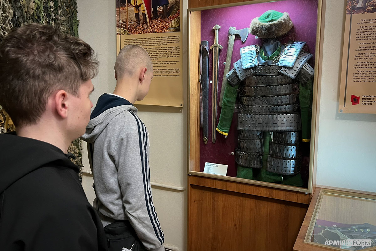 — Виставка розповідає про історію та сучасність українського війська та демонструє нерозривний зв’язок між поколіннями тих, хто зараз боронить від агресора українську державність, і поколіннями героїв, які відстоювали нашу незалежність у минулому, — розповів полковник Ігор Косяк. — На виставці відвідувачі мають змогу ознайомитись з військовими одностроями, спорядженням, зброєю та військовою символікою українського війська від часів середньовіччя до сучасності.