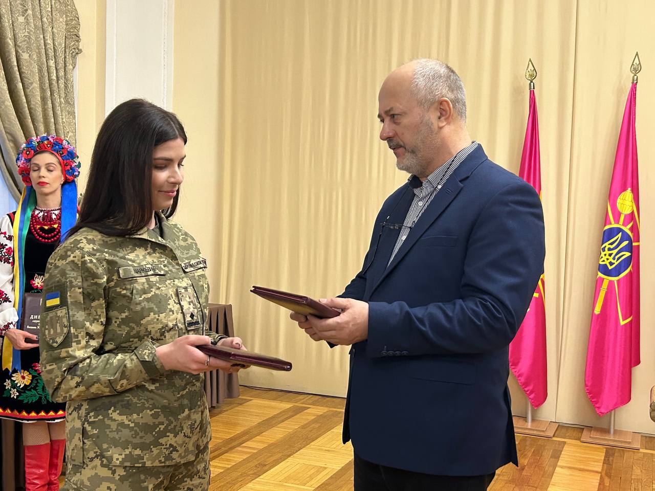 Нагороджував почесними відзнаками тимчасовий виконувач обов’язків начальника Управління гуманітарного забезпечення МО України Олексій Сергієнко. У вітальному слові він наголосив, що під час війни з’являються твори, пронизані болем бойових дій. Проте саме вони залишаються в пам’яті назавжди, адже в них описана трагедія України.