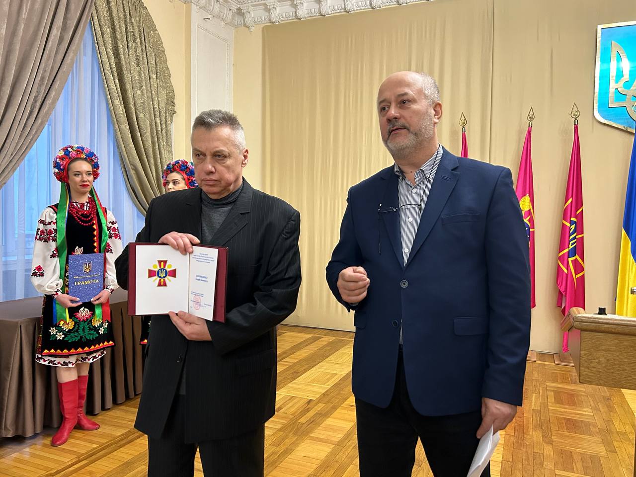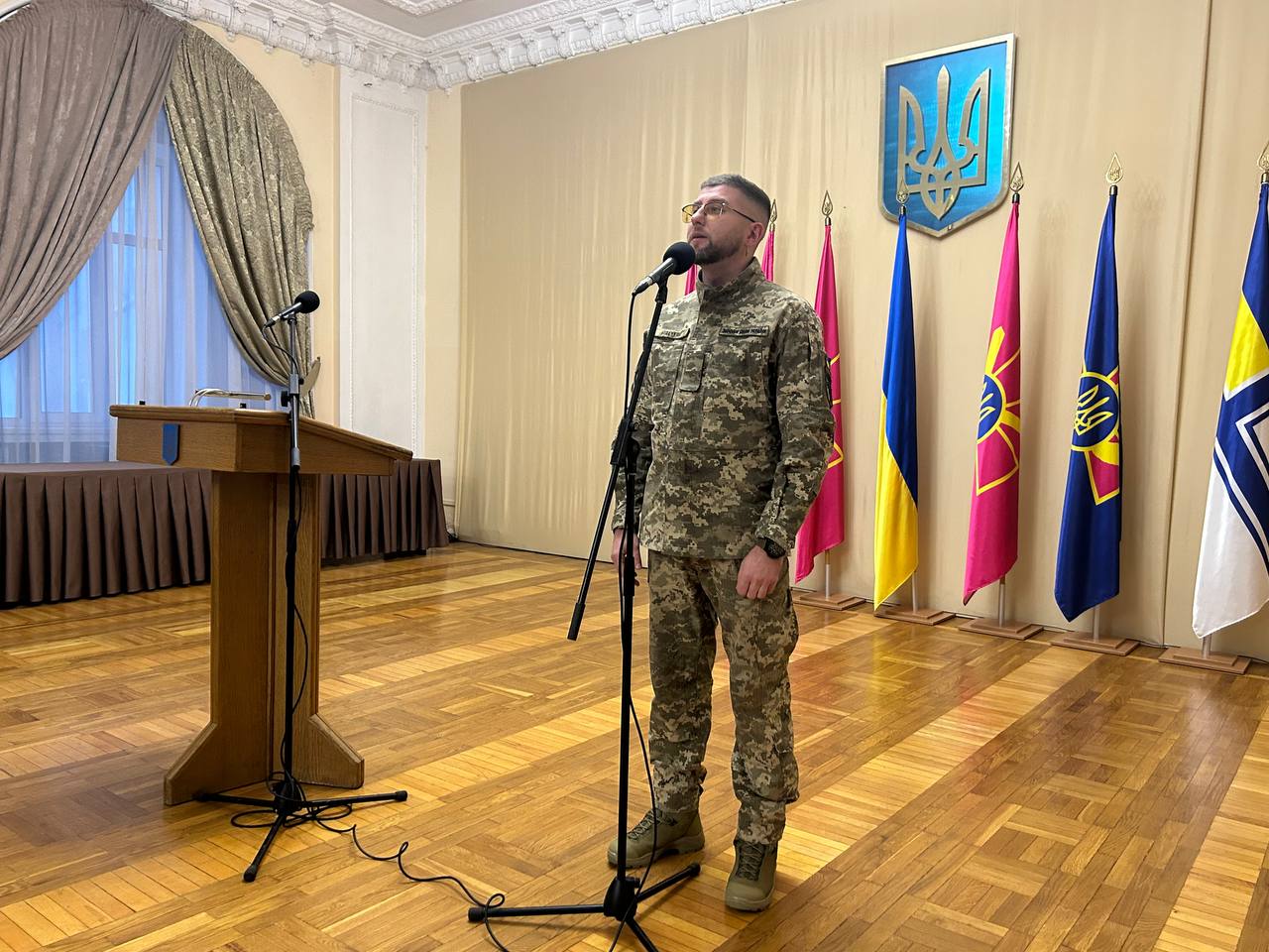 Нагороджував почесними відзнаками тимчасовий виконувач обов’язків начальника Управління гуманітарного забезпечення МО України Олексій Сергієнко. У вітальному слові він наголосив, що під час війни з’являються твори, пронизані болем бойових дій. Проте саме вони залишаються в пам’яті назавжди, адже в них описана трагедія України.