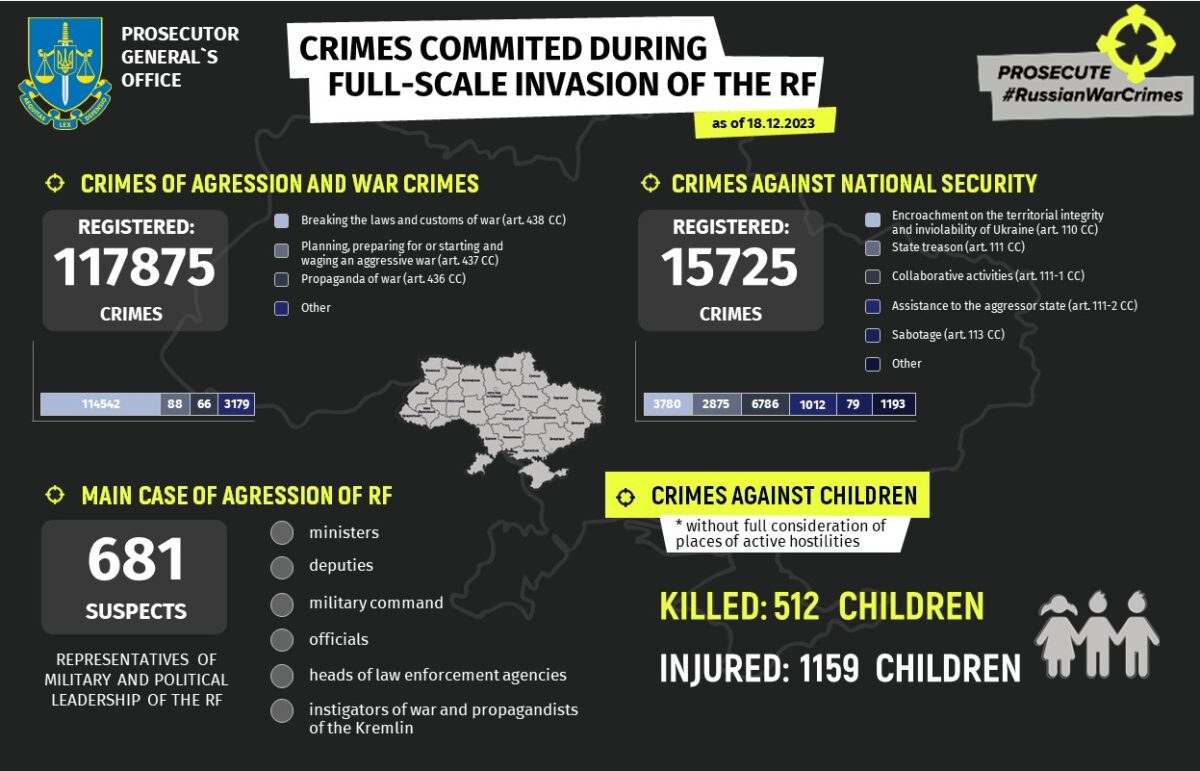 Офіс Генерального прокурора України повідомляє про задокументовані злочини, вчинені в період широкомасштабної агресії російської федерації проти України.