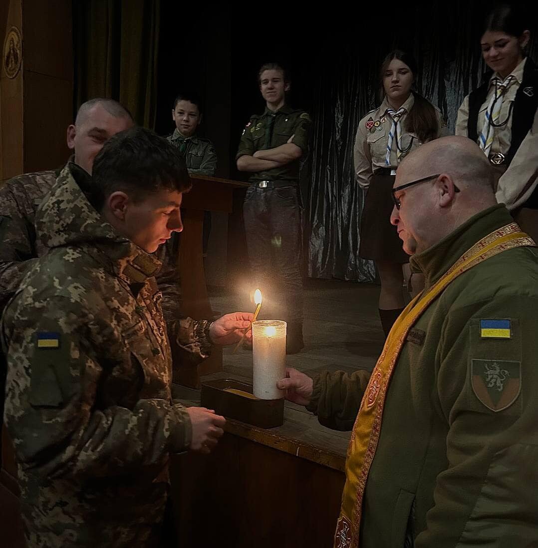 Пластуни разом з військовим капеланом зенітного ракетного полку Українських Січових Стрільців молодшим лейтенантом Юрієм Лесишиним доставили вогонь для захисників українського неба. Цей вогонь даватиме енергію нашим воїнам, які захищають Україну.