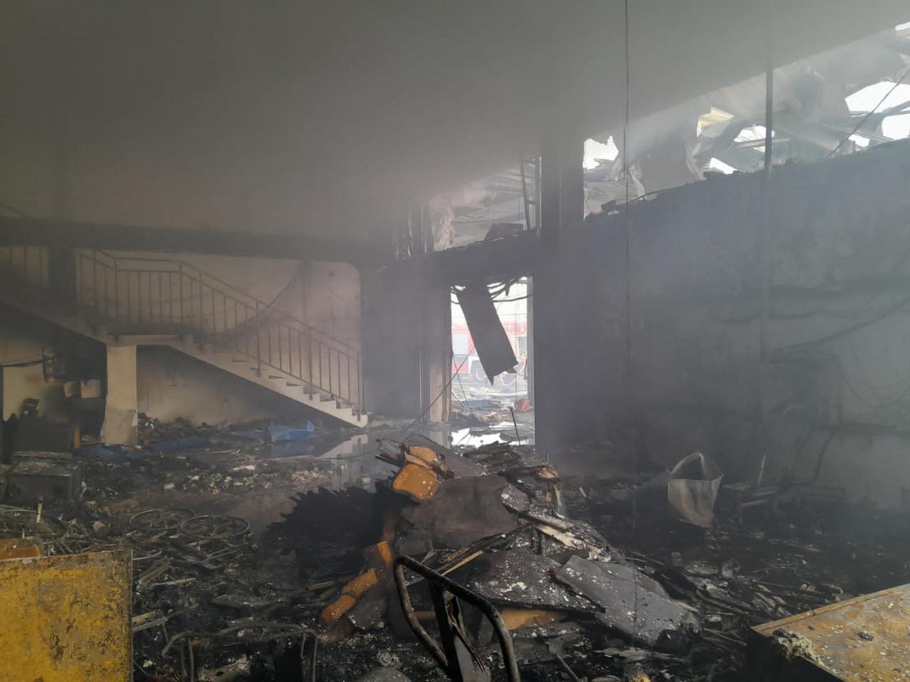 «Пряме влучання та пожежа, що виникла внаслідок цього, повністю знищила запаси гуманітарної допомоги для жителів Херсонщини, що зберігалися на складі.