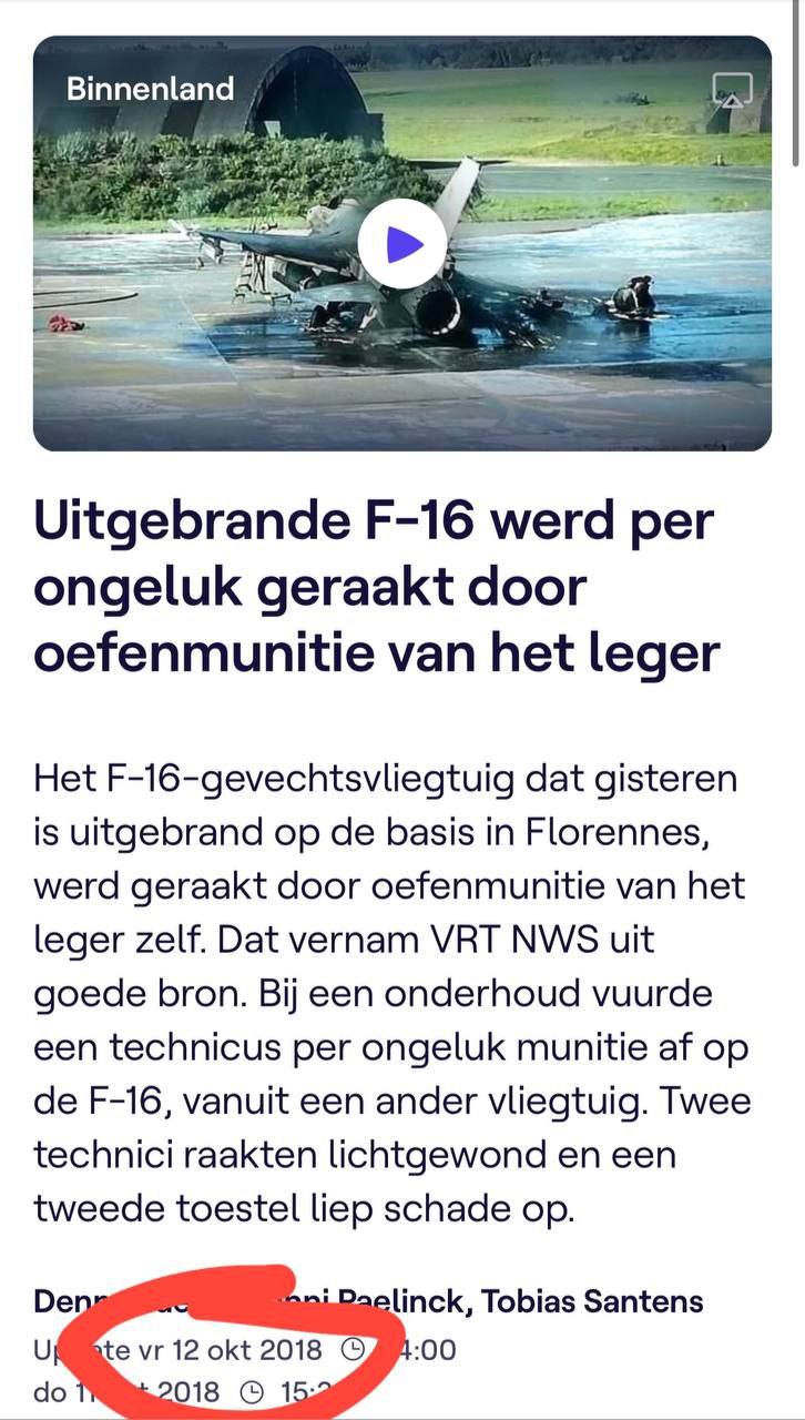 У Силах оборони півдня виклали фото, відповідно до яких видно, що та світлина, яку поширюють росіяни, ілюструє статтю видання VRT news від 12 жовтня 2018 року, і що насправді на цьому фото — випадково згорілий F-16, який потрапив під армійський навчальний боєприпас на авіабазі Флоренн в провінції Намюр (Бельгія).