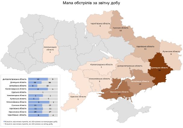 «Загалом з різних видів озброєння — міномети, танки, артилерія, РСЗВ, БПЛА, ЗРК, тактична авіація — були атаковані 126 населених пунктів та 39 об’єктів інфраструктури», — йдеться у повідомленні.