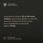 Уряд планує зберегти доплати військовим у розмірі 30 та 100 тисяч гривень впродовж періоду дії воєнного стану.