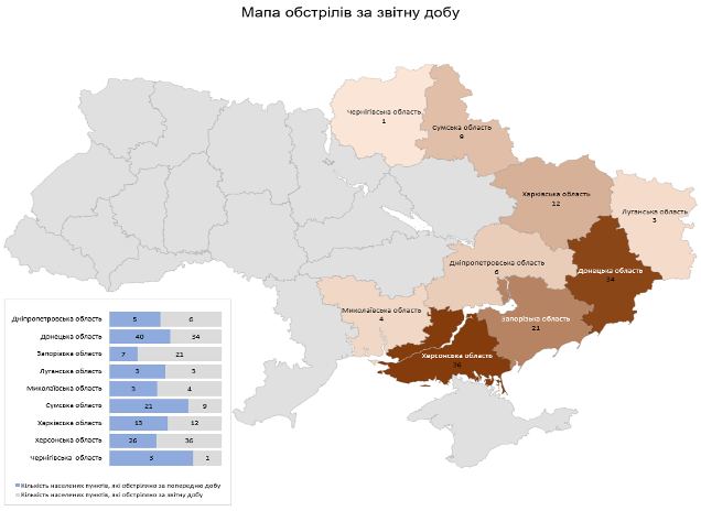 Загалом з різних видів озброєння — міномети, танки, артилерія, РСЗВ, БПЛА, ЗРК, тактична авіація — були атаковані 126 населених пунктів та 73 об’єкти інфраструктури.
