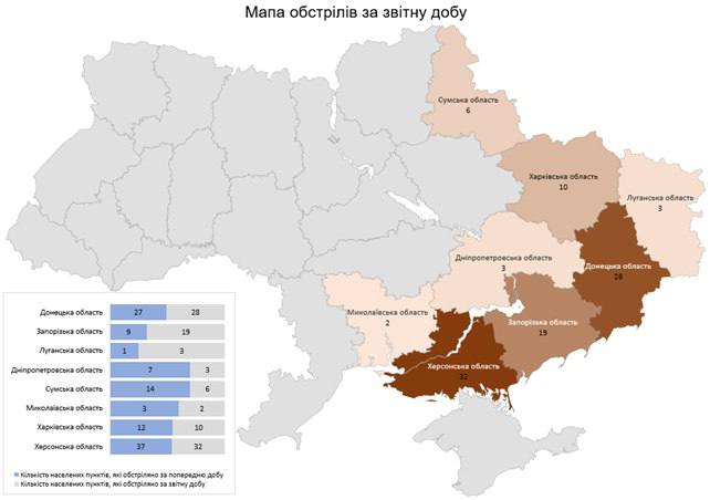 Загалом з різних видів озброєння — гранатомети, міномети, танки, артилерія, РСЗВ, ударні БПЛА, тактична авіація — були атаковані 103 населені пункти та 62 об’єкти інфраструктури», — йдеться в дописі.