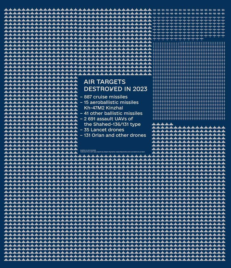 Наші відважні воїни у 2023 році виконали дивовижну роботу та знищили 3800 російських повітряних цілей.