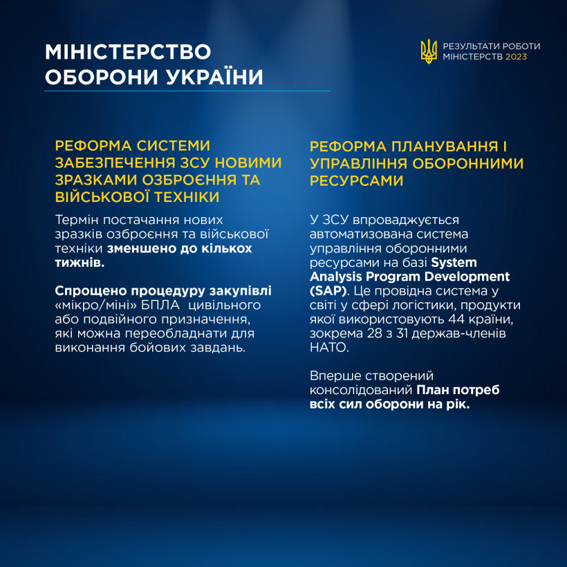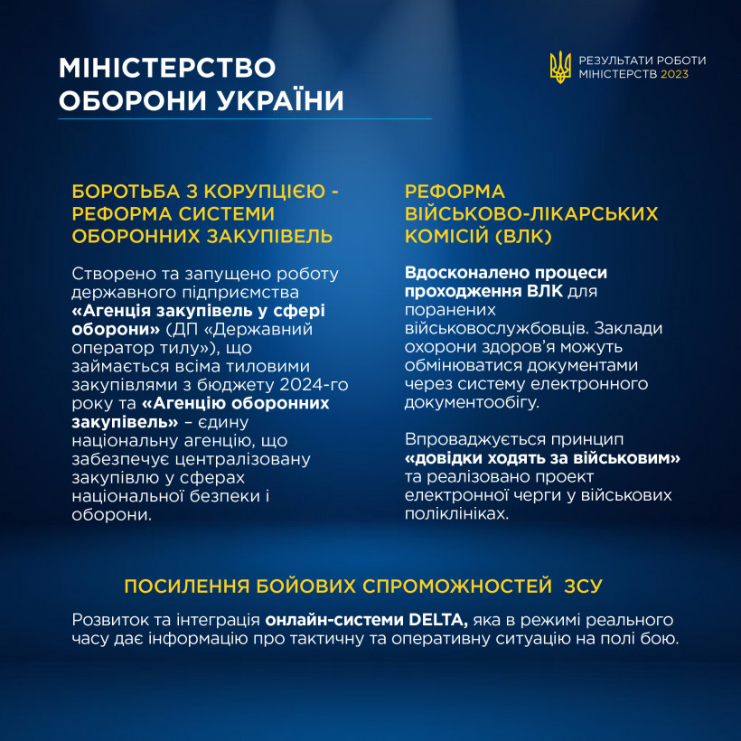 Зменшення терміну постачання озброєння для ЗСУ, спрощення процедури закупівель та боротьба з корупцією — результати роботи Міноборони за 2023 рік.