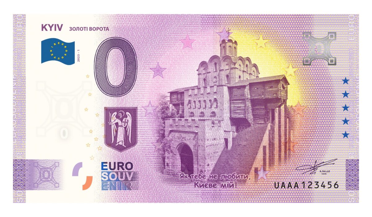 Отже нині, коли Україна прагне до об’єднання з Європою і популяризує в світі свою багатовікову історію і культуру, у Франції було виготовлено таку лімітовану колекцію євробанкнот номіналом 0 із зображенням Золотих воріт, які входять до списку Світової спадщини ЮНЕСКО і є однієї з найвеличніших пам’яток українського народу. У ХІІІ столітті саме ці мури були одним із бастіонів, що стали на шляху монголо-татарської навали, тим самим уберігши від неї країни Європи.