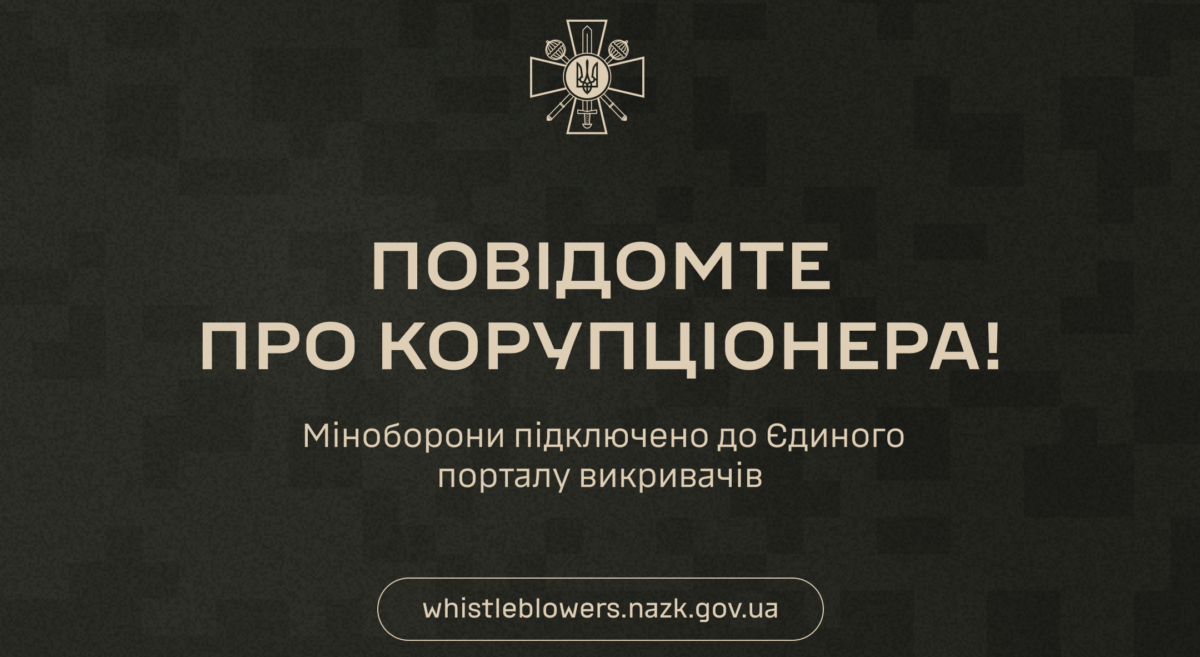 Відтепер кожен, кому відомо про можливі факти корупційних або пов’язаних з корупцією правопорушень у Міністерстві оборони, може подати повідомлення викривача корупції (зокрема анонімне).