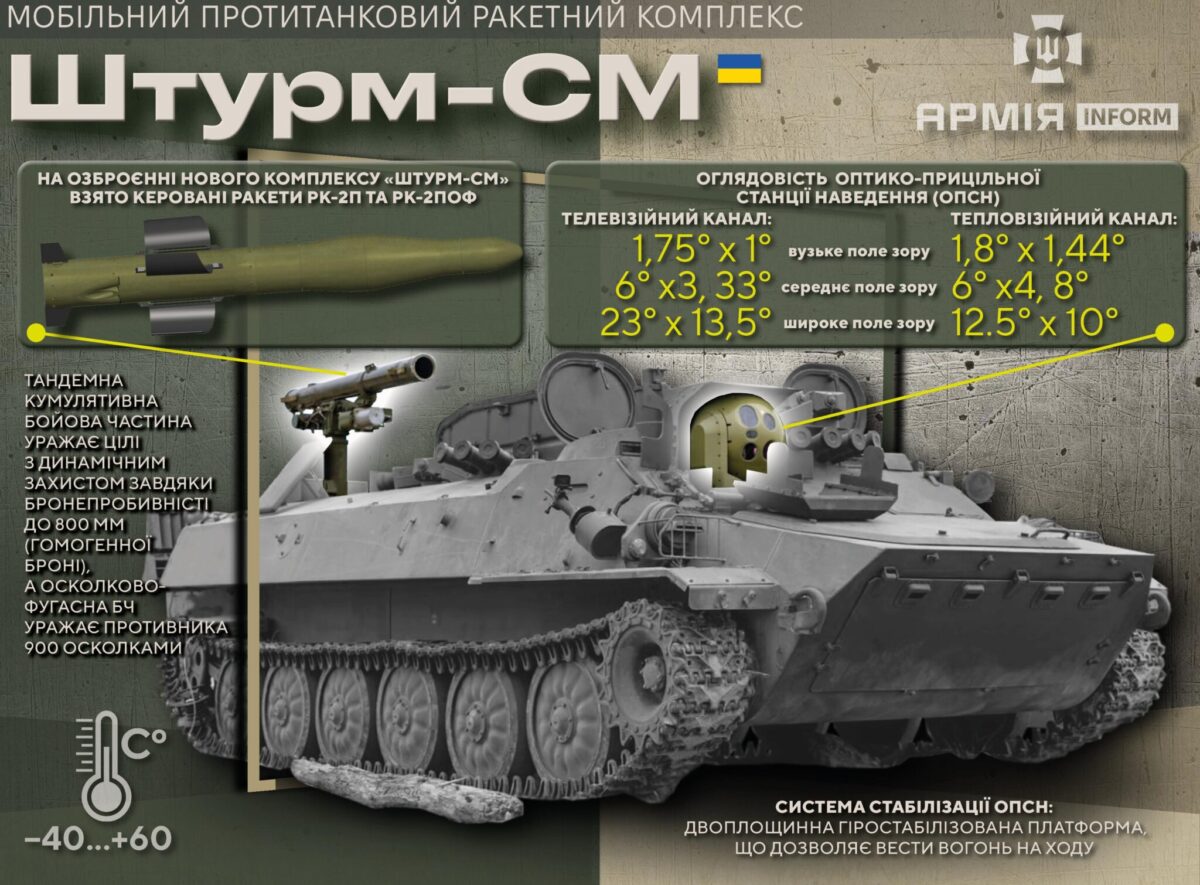 Нещодавно заступник Міністра оборони України генерал-лейтенант Іван Гаврилюк повідомив про прийняття на озброєння цілої низки зразків озброєння, серед них — оновлений мобільний протитанковий ракетний комплекс «Штурм-СМ», на базі однієї з бойових броньованих гусеничних машин.
